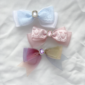 I make hair accessories for people who love wearing bows in their hair, but want a little something uniquely different from what’s commonly seen elsewhere! Many customers adore the long iridescent draping ribbons from the hair clips I’ve made, and it pairs beautifully with ponytails or with your hair down!