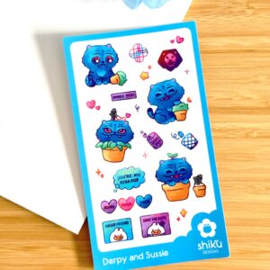 Hi there! We’re Kae and Jas, the amazing duo of Shiku Designs. We’re both art hobbyist and eventually decided to turn it into a small business during COVID ❤. You may notice in our art that we’re big cat lovers, in fact, Kae actually already has 3 and tries to convince her partner that they need to collect one of every colour. We’re also both absolute foodies, but you can probably always find Jasmine eating some strawberry shortcake or at some new restaurant around Melbourne in her spare time.
