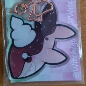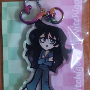 I make a range of different items from prints, acrylic keychains, stickers, badges, standees, phone charms, and more. I create merchandise for series such as pokemon, monster high, arcane, hazbin hotel, helluva boss, cookie run and more. Most of my work is drawn in a cute cartoony style, however many of my prints feature more detailed and vibrantly coloured artwork.