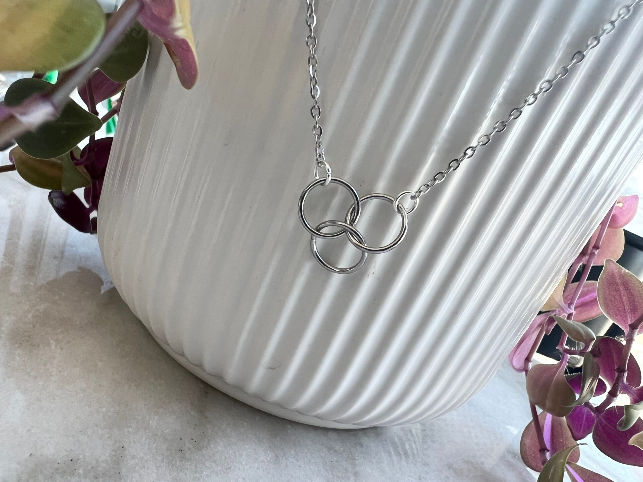 Dainty interlocking rings (please note pendant does not lie completely flat due to interlocking nature of rings)