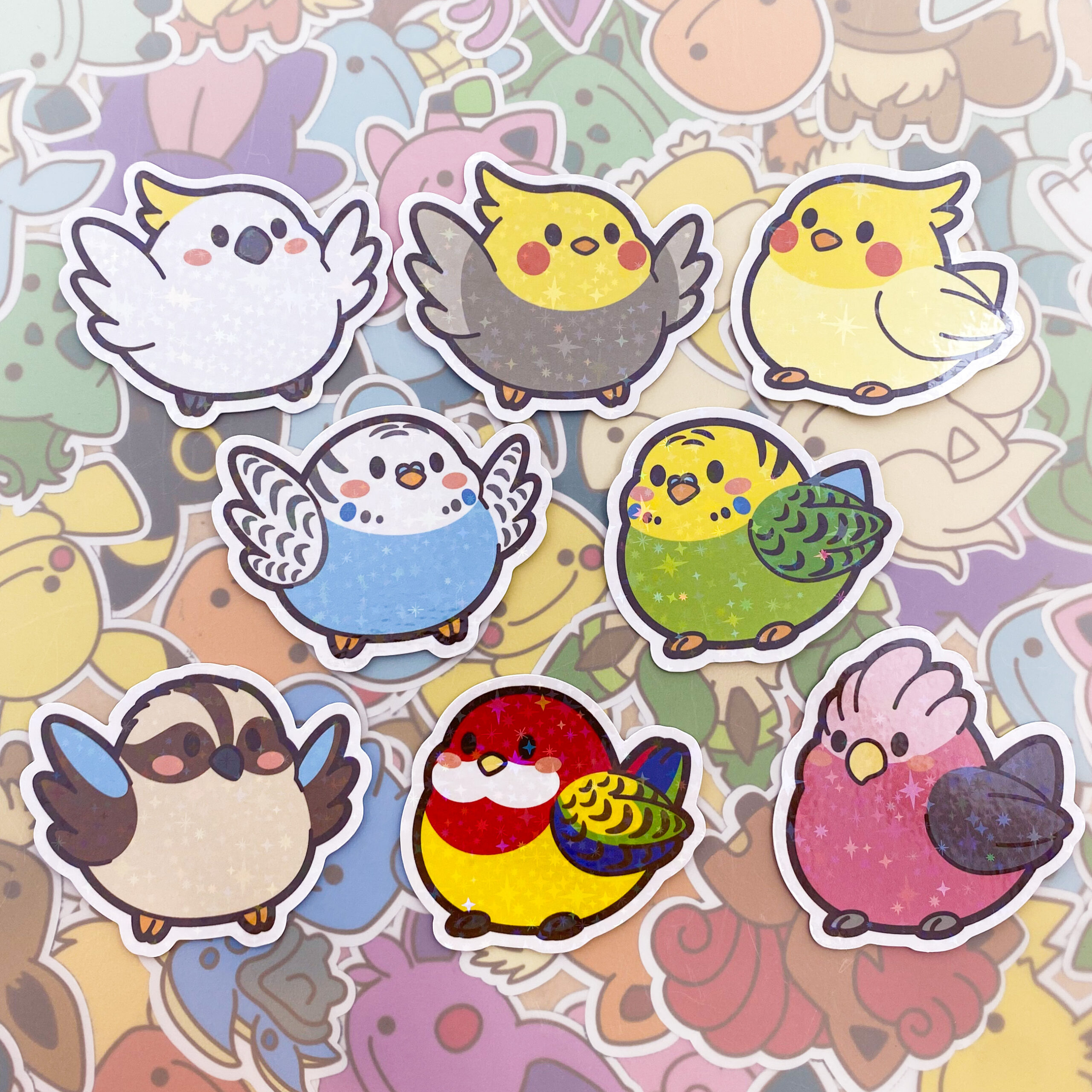 Stickers have a glitter finish