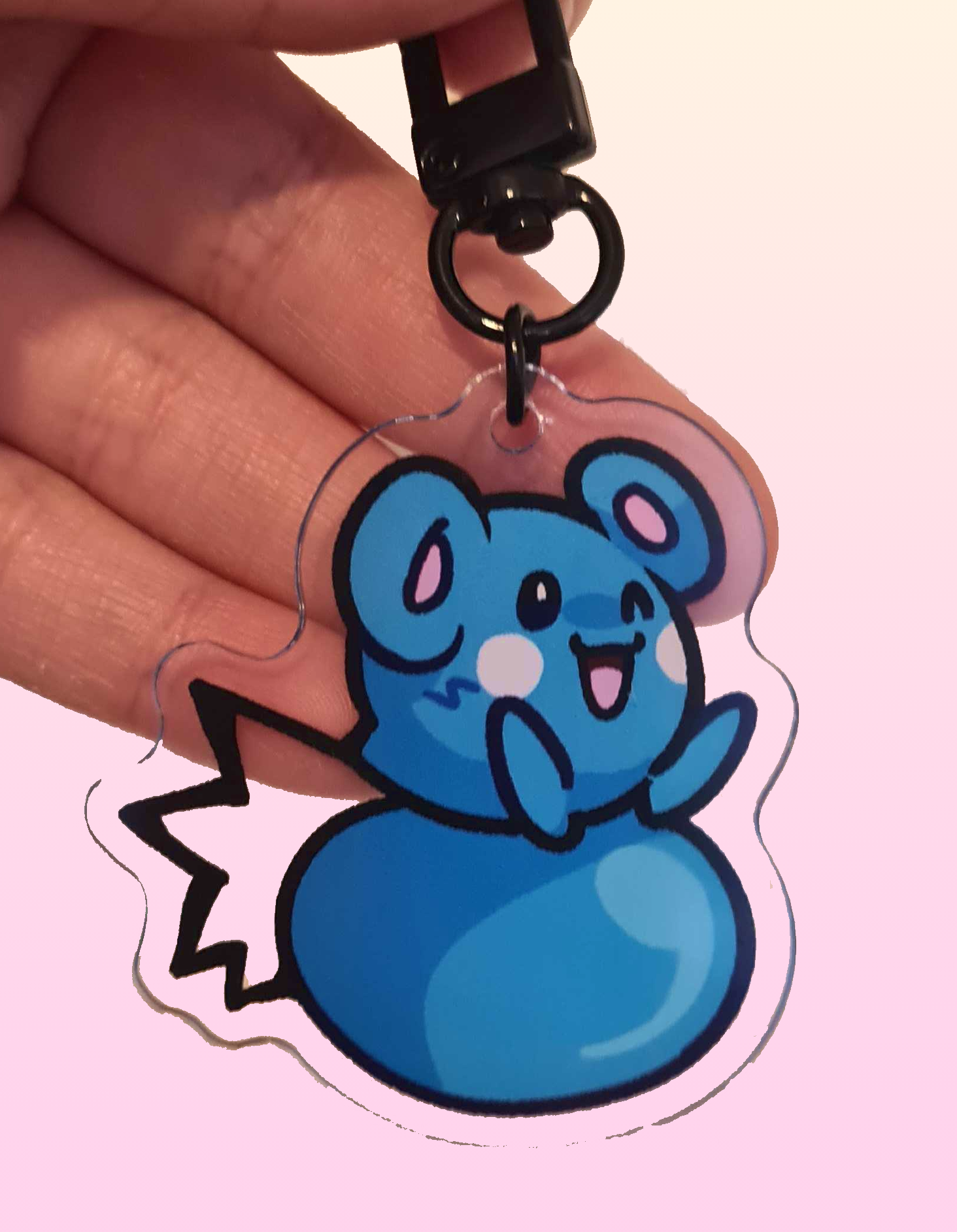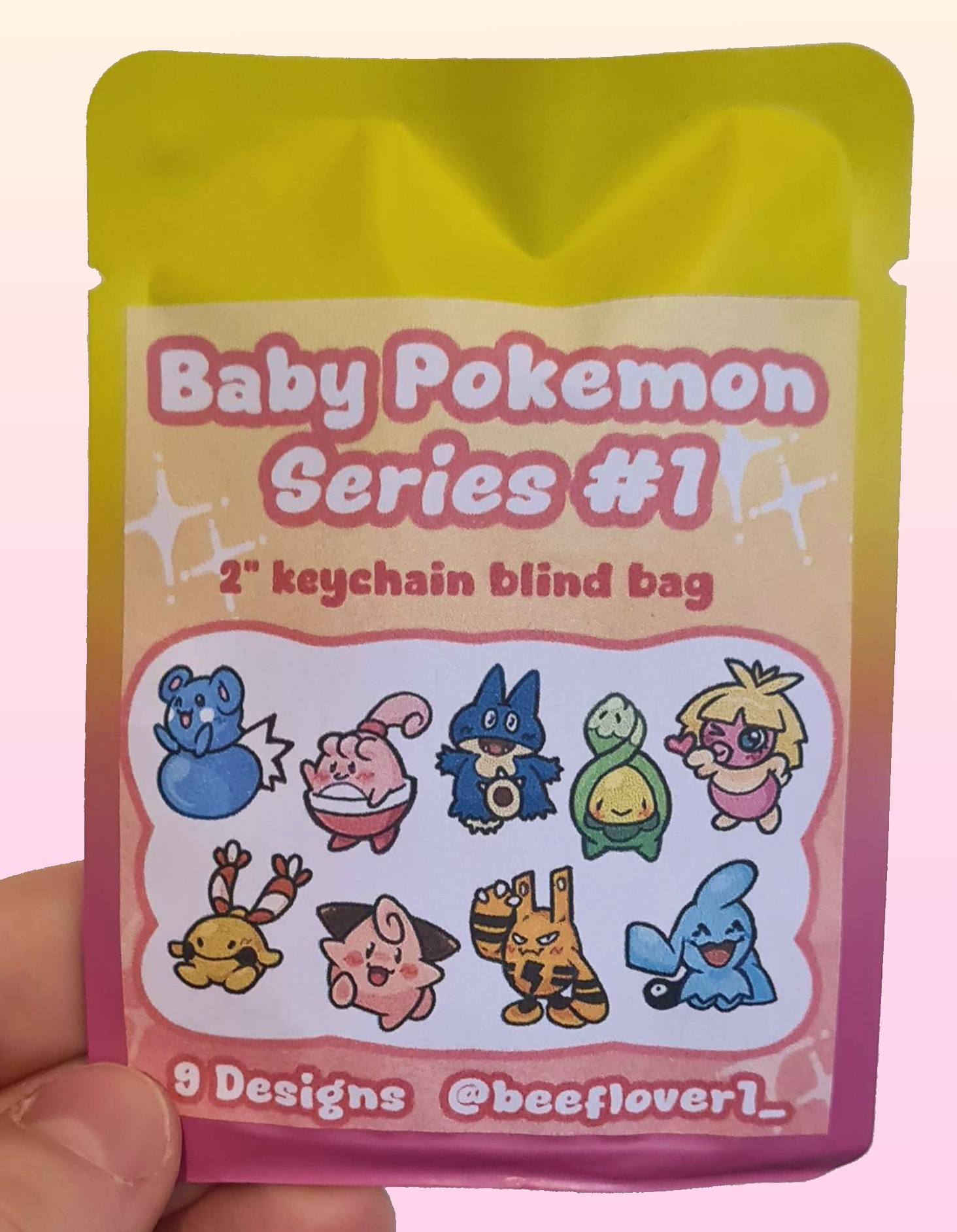 A pokemon blindbag featuring 9 different baby Pokemon! In a bag you recieve a random 2″ acrylic keychain of one of the 9 designs.