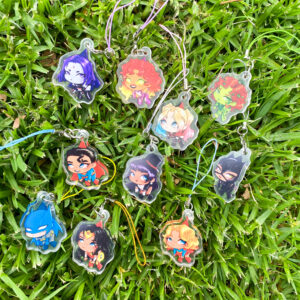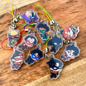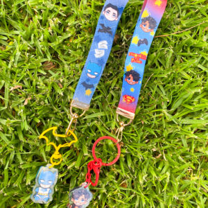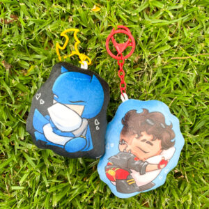 Approx 10cm tall with coloured bat shaped metal keychain attachments.