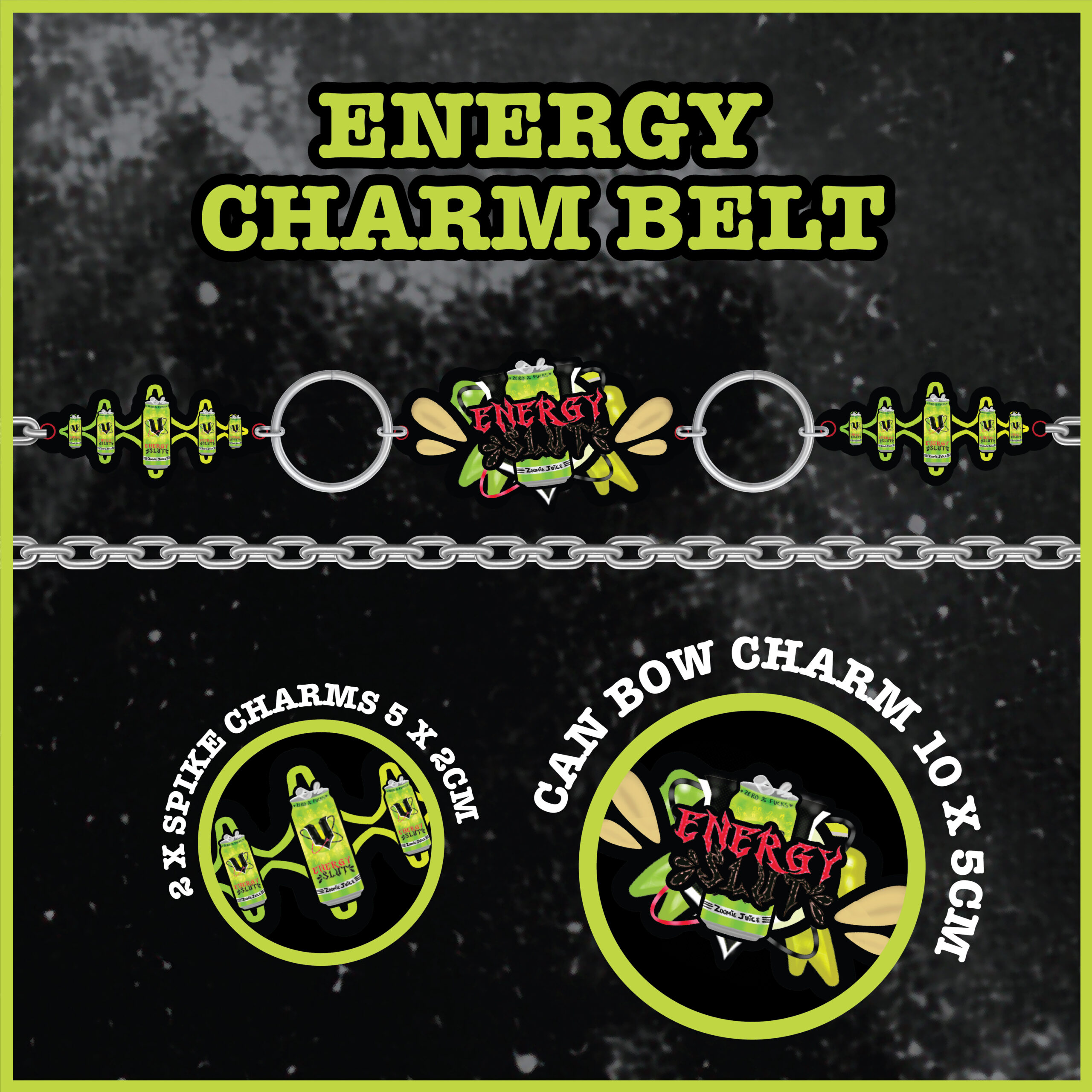 Energy Slut 3-Piece Acrylic Charm Belt