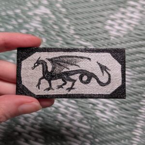 A stylish and shiny enamel pin, featuring a serpent biting off its on tail, ready to take its place on your lapel, bag, or wherever else you put your pins