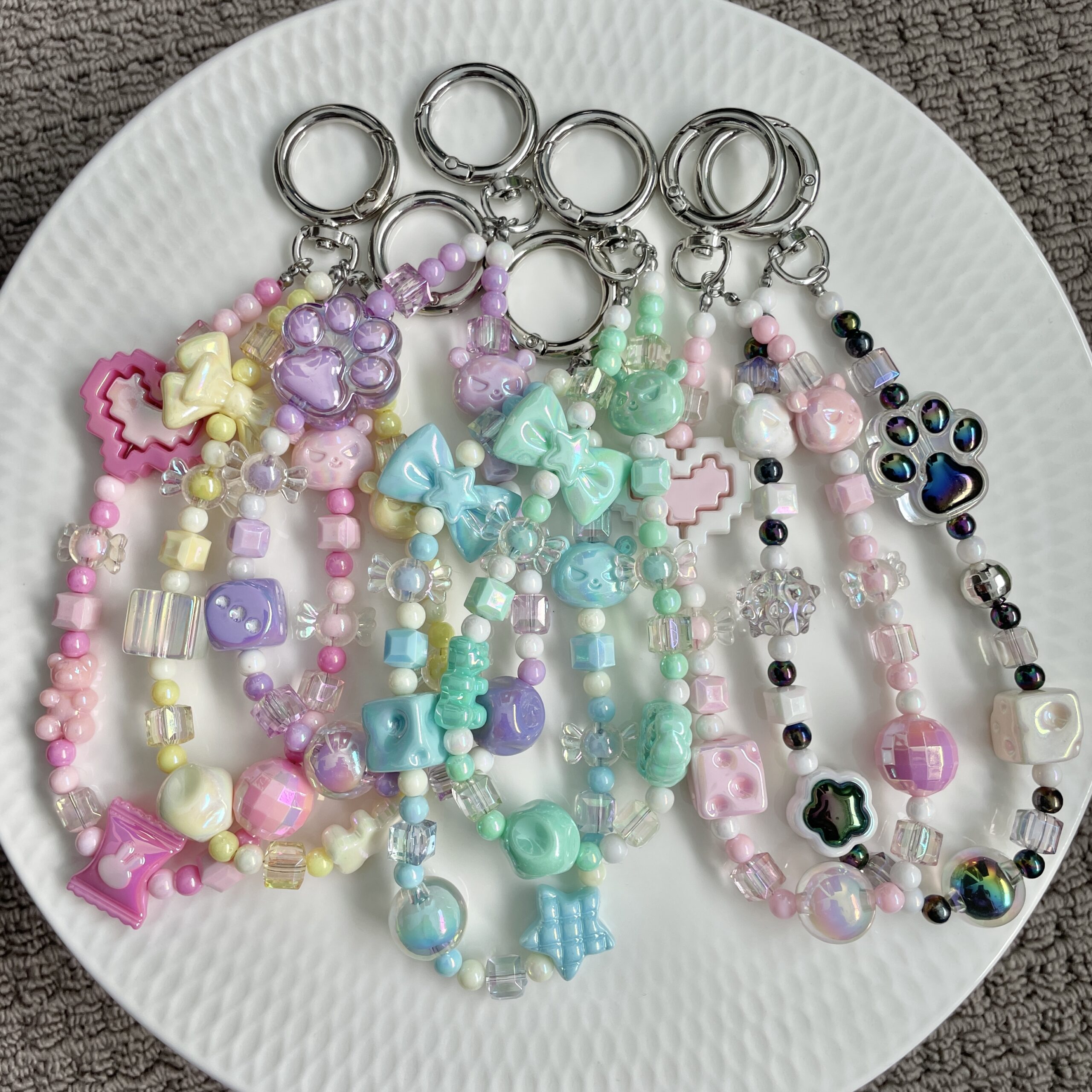 Sweet, colourful, and full of character — the Candy Bear Acrylic Charm Series features adorable bear designs paired with bright, candy-inspired beads. Each charm is handmade with love, making it the perfect accessory to add a pop of fun to your bag, keys, or belt loop. Cute, playful, and impossible not to smile at!