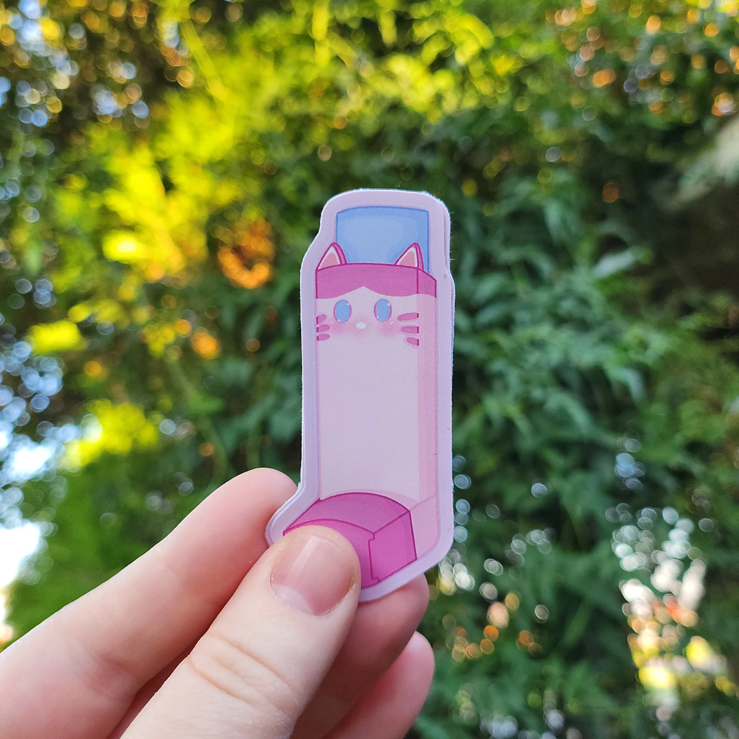 Add a quirky and cute touch to your belongings with this Cat Asthma Puffer sticker! Featuring an adorable asthma puffer with a cat face, this sticker is perfect for decorating notebooks, laptops, water bottles, planners, and more. Made from durable, high-opacity adhesive vinyl, it’s designed for long-lasting use and ensures a smooth, bubble-free application.