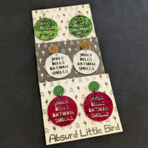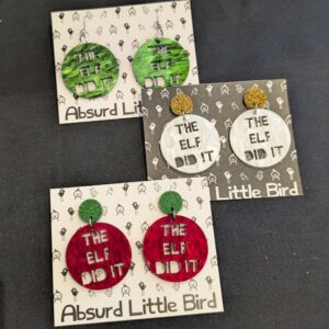 Hand painted, laser cut glitter acrylic, surgical steel stud posts.