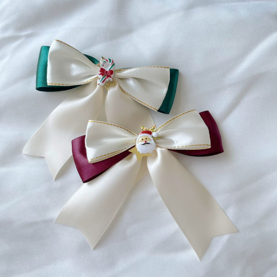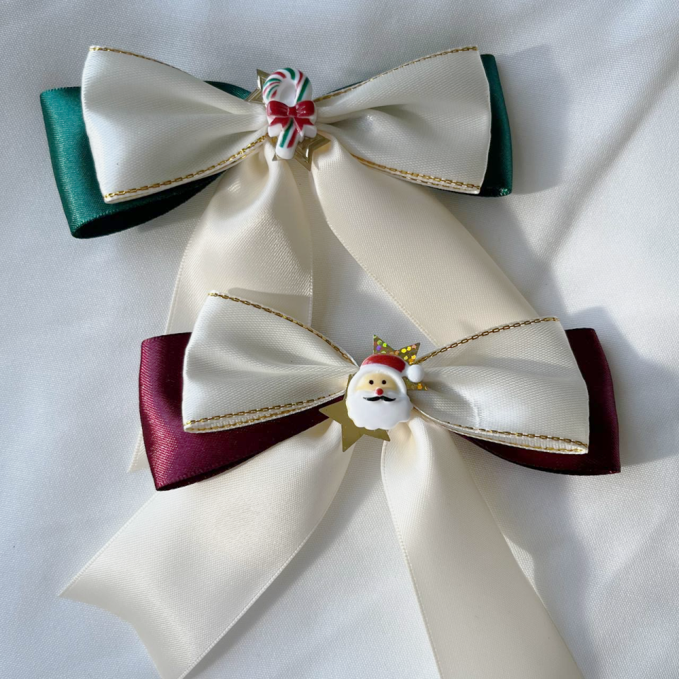 Mini Xmas themed bow clips! Comes in red or green accent colours.
