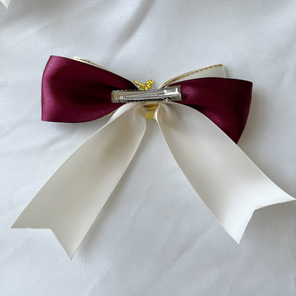 These cute bow clips are sure to add a sparkly touch to your outfit! Like my other mini bows, these come with a small crocodile clip backing.