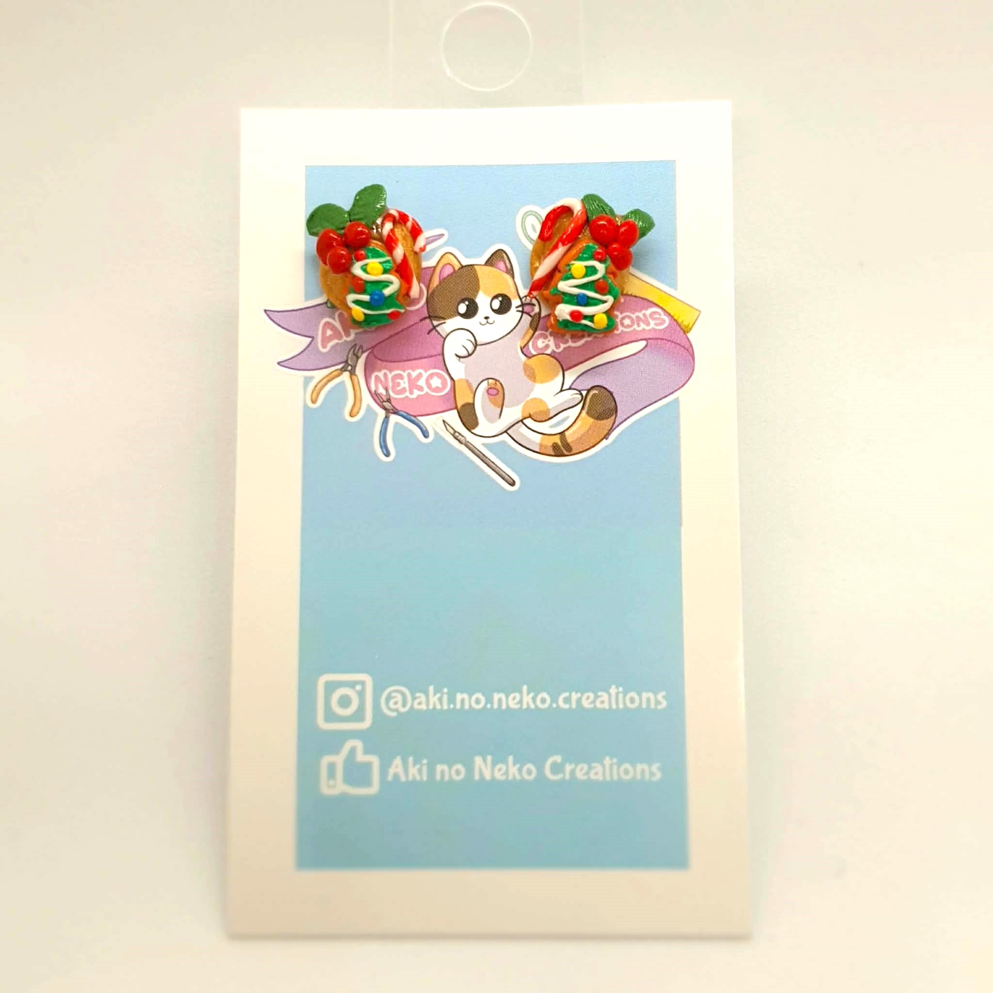| Stud / Post Earrings, Polymer Clay, Christmas Tree Cookie Candy Cane and Holly | 1 | 0 |