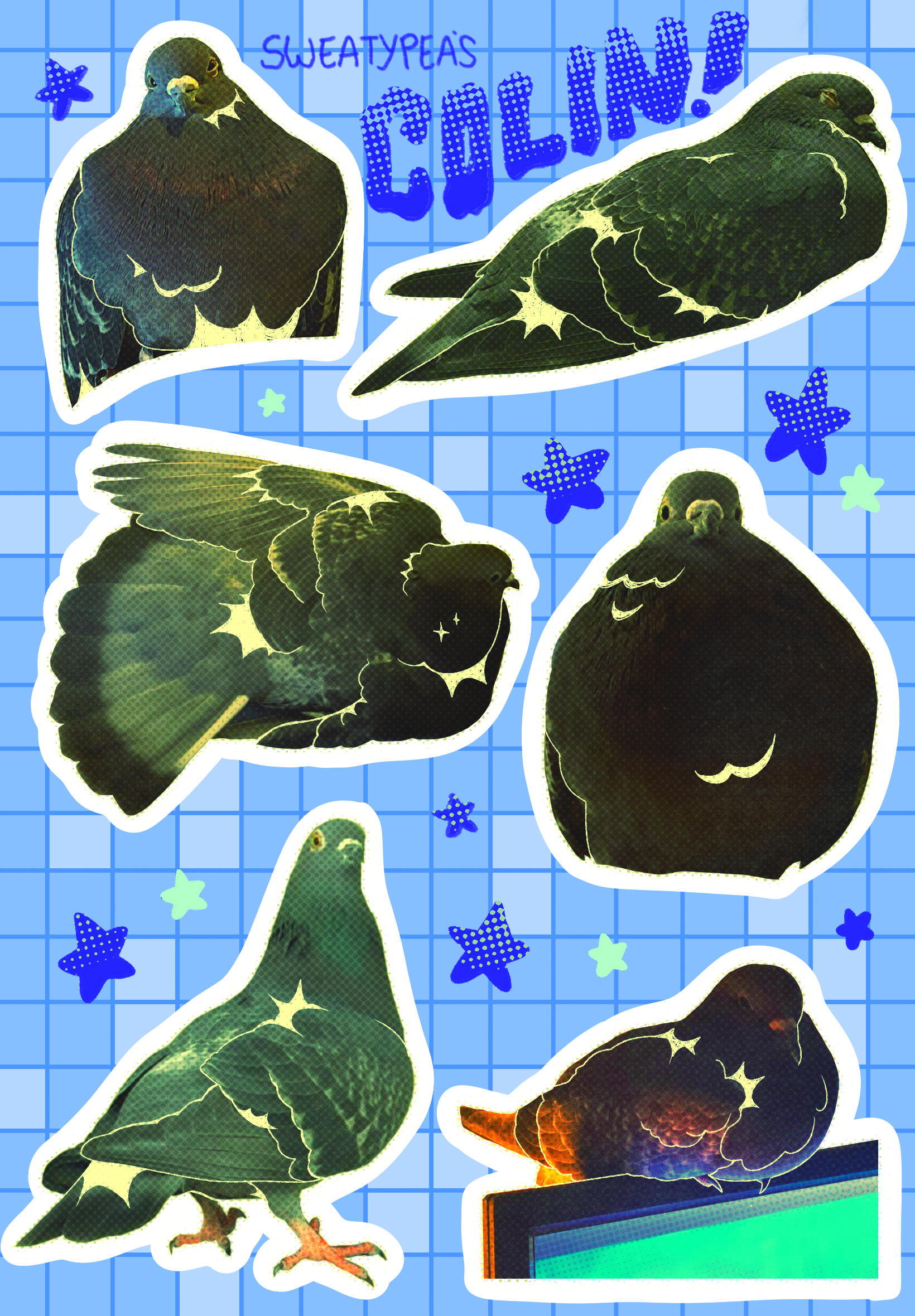Vinyl sticker sheet of my pet pigeon, Colin!
