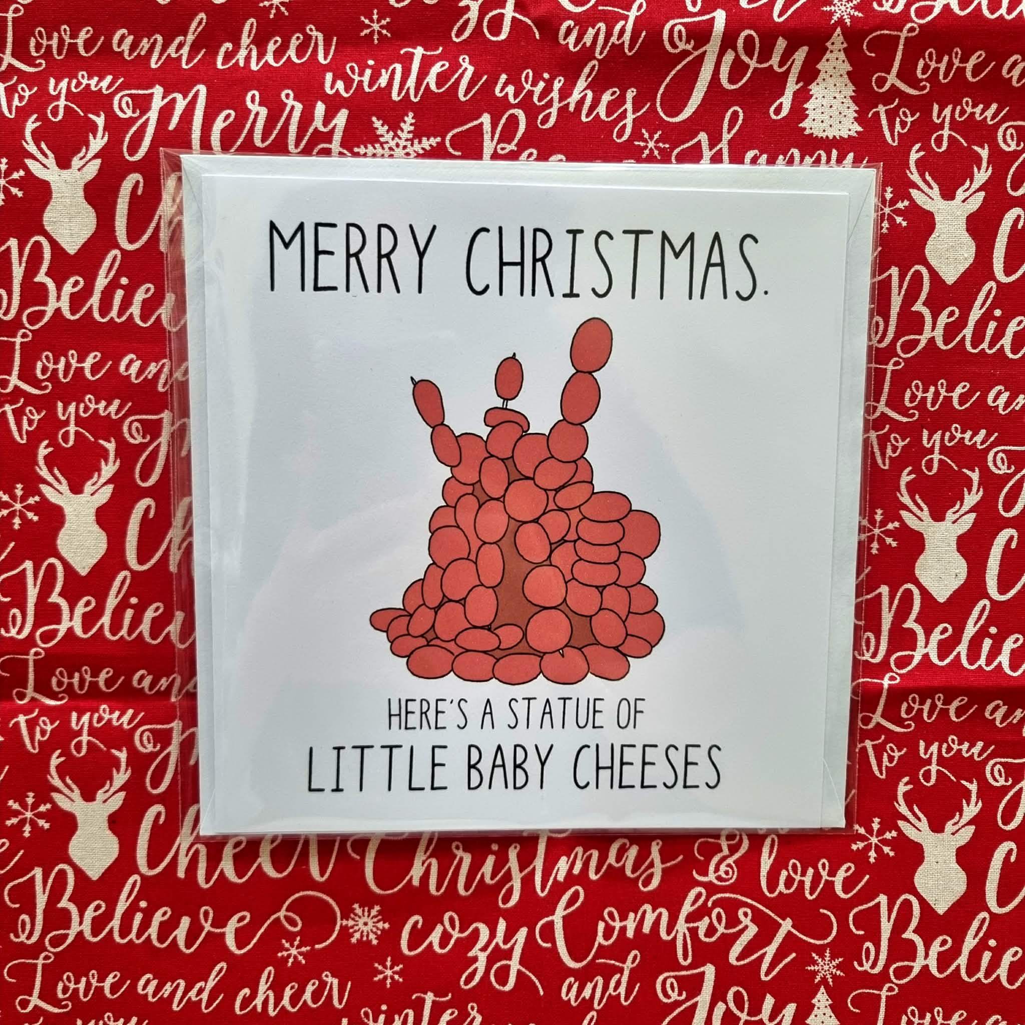A funny Christmas card featuring Kath and Kim’s iconic ‘statue of little baby cheeses’. Card comes blank and with an envelope.
