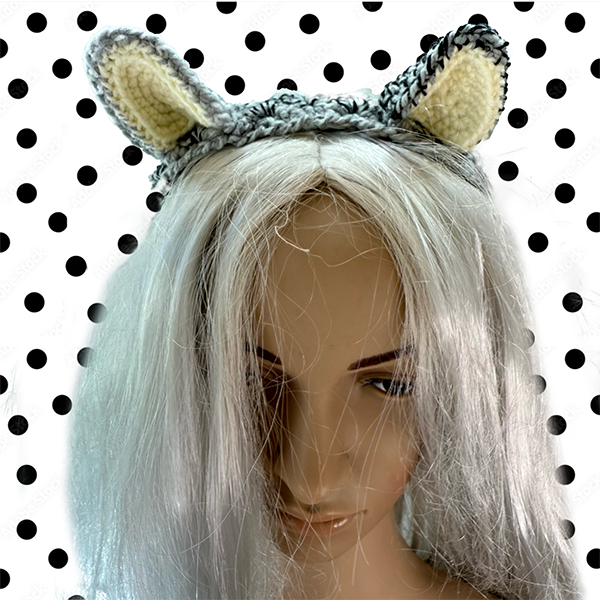 A crochet cat-eared headband for all occasions. Be it for a dress-up, a party, or just because. ONE SIZE 90cm