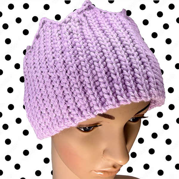 Acrylic yarn. Made in a smoke-free environment. Generous fit for adult-sized heads.
