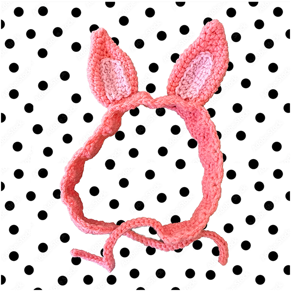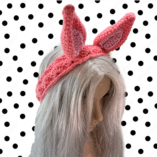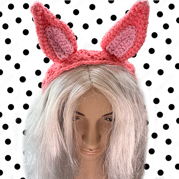 A crochet pink pony-eared headband for all occasions. Be it for a dress-up, a party, or just because. ONE SIZE 90cm