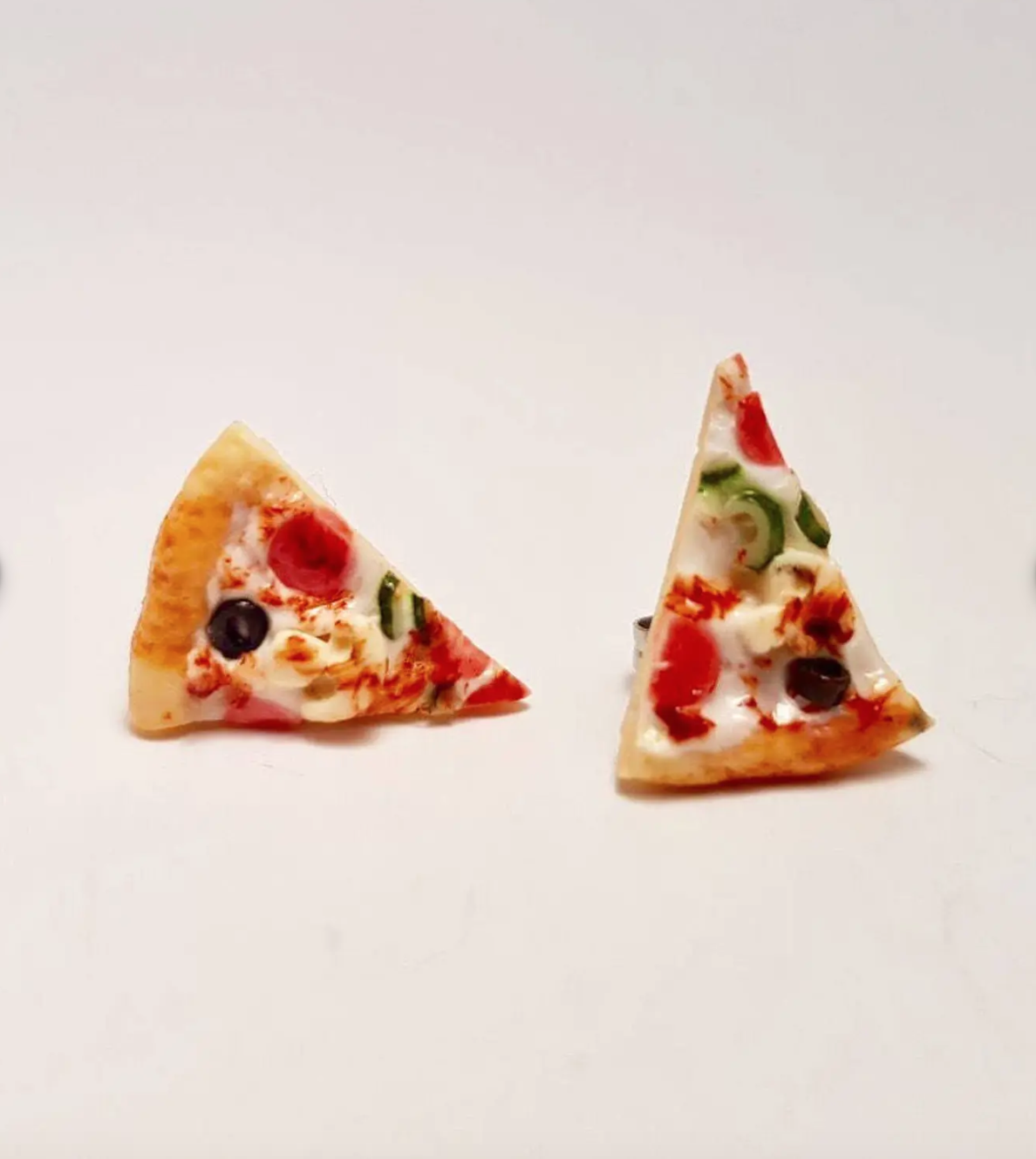 These cute miniature pizza slices are topped with cheese, pepperoni, olives, peppers and you may see a cute little mushroom, all on a base of pizza crust. Save yourself a trip to the local pizza shop, and save on the calories at the same time! Each slice is approx. 1.5cm in length. Each may vary slightly due to the handmade nature of this item.