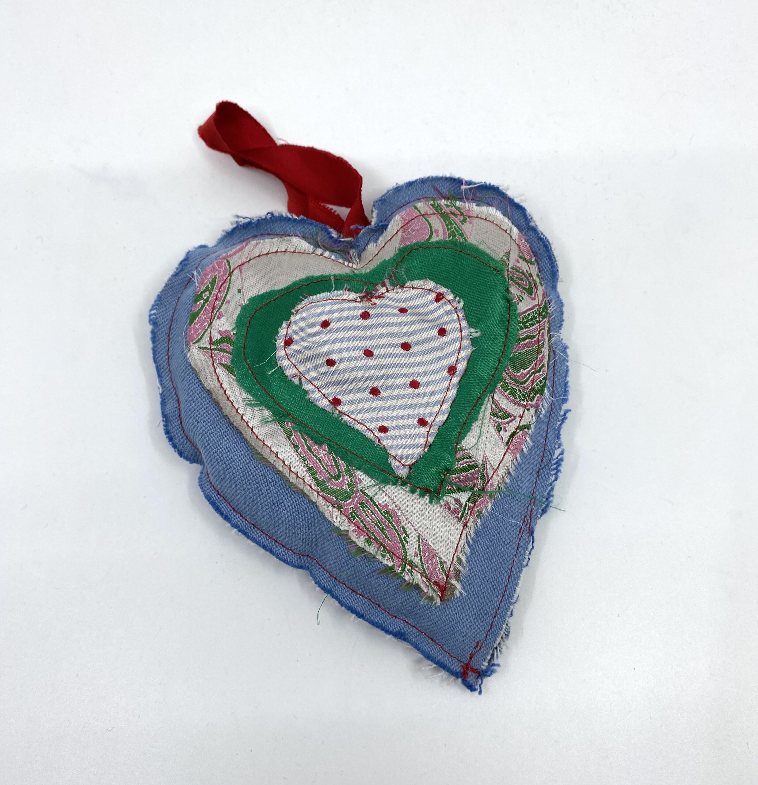 Have a happy eco-friendly Christmas and decorate your tree sustainably with this joyful fabric silk and denim Christmas bauble!