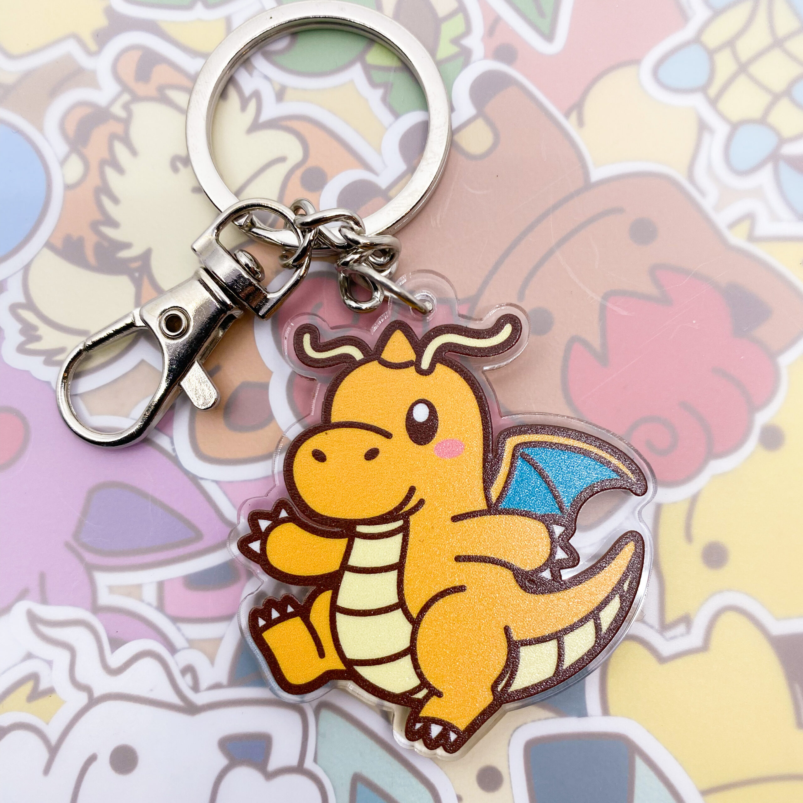 Acrylic Keyring featuring Dragonite with metal clasp and ring