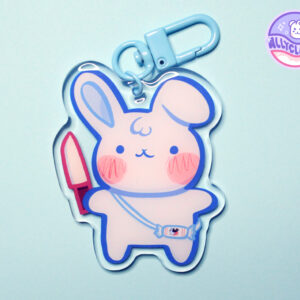 The Charm is 2.5 inch, double sided with one side epoxy with a matching light blue accessory. The glass jar is semi transparent with a blue gradient.