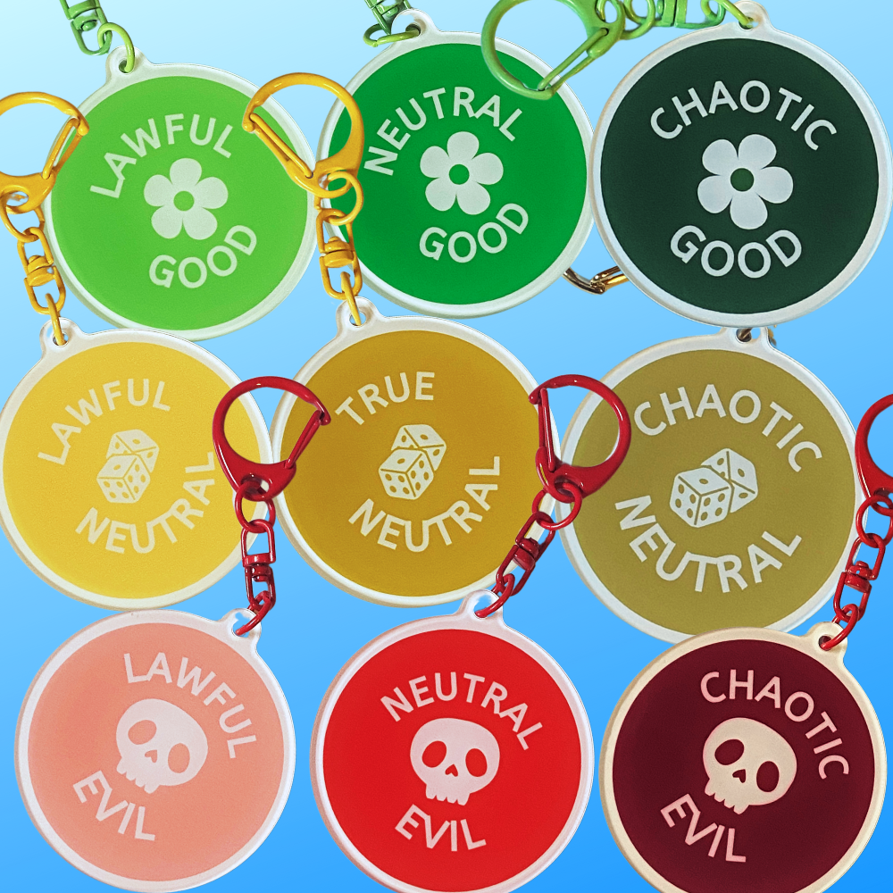 | Design | Lawful Good, Neutral Good, Chaotic Good, Lawful Neutral, True Neutral, Chaotic Neutral, Lawful Evil, Neutral Evil, Chaotic Evil |