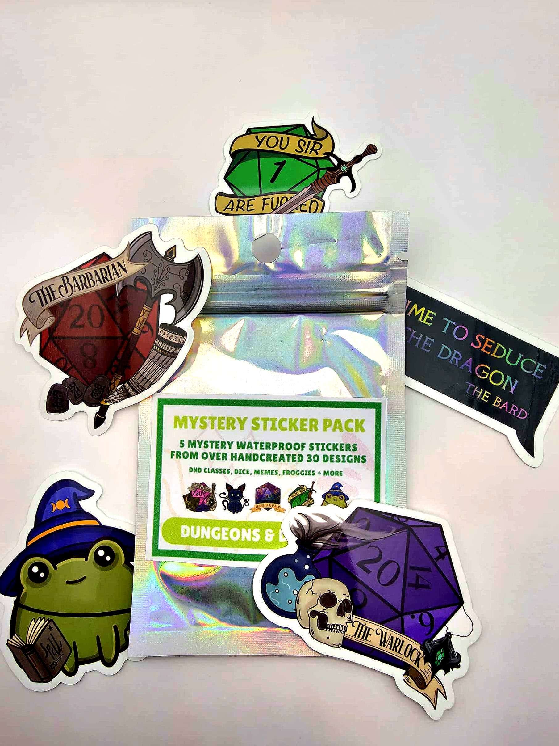 Our Dungeons and Dragons Mystery Sticker Pack comes with 5 high quality, waterproof, gloss finished stickers from 40 of our adorably hand drawn designs.