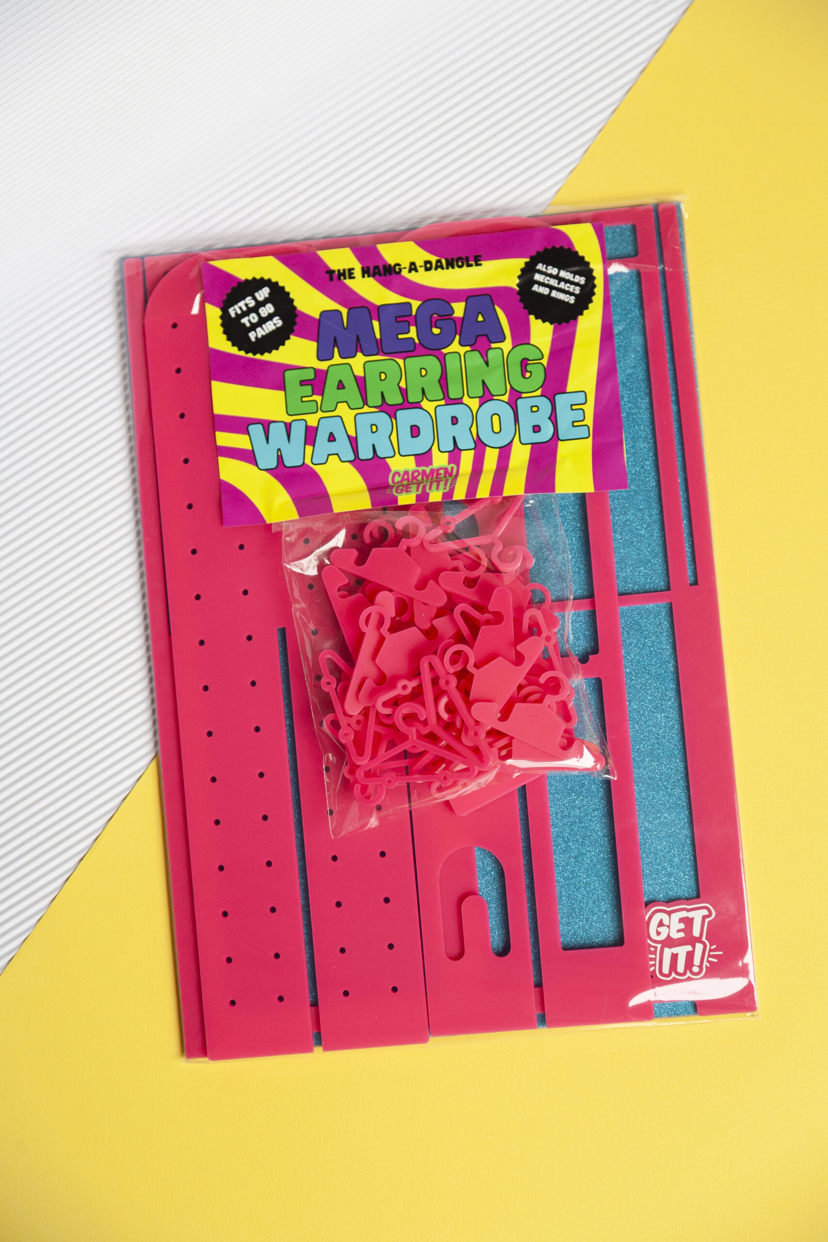 Tired of digging through tupperware to find your favourite earrings? Meet the ‘Hang-a-Dangle’ Earring Wardrobe—the fun, functional, and fabulous way to display your epic collection. Available in two sizes and holding 60+ pairs, it’s the stylish organiser you never knew you needed (but absolutely do).