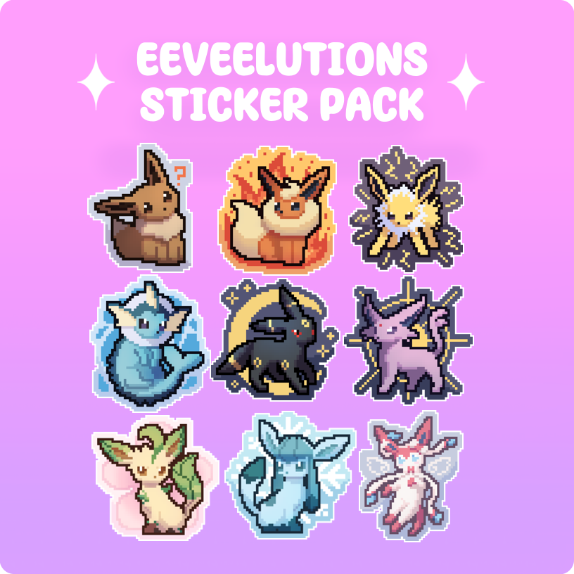 › Contains 9 holo stickers of Eevee + each Eeveelution!
