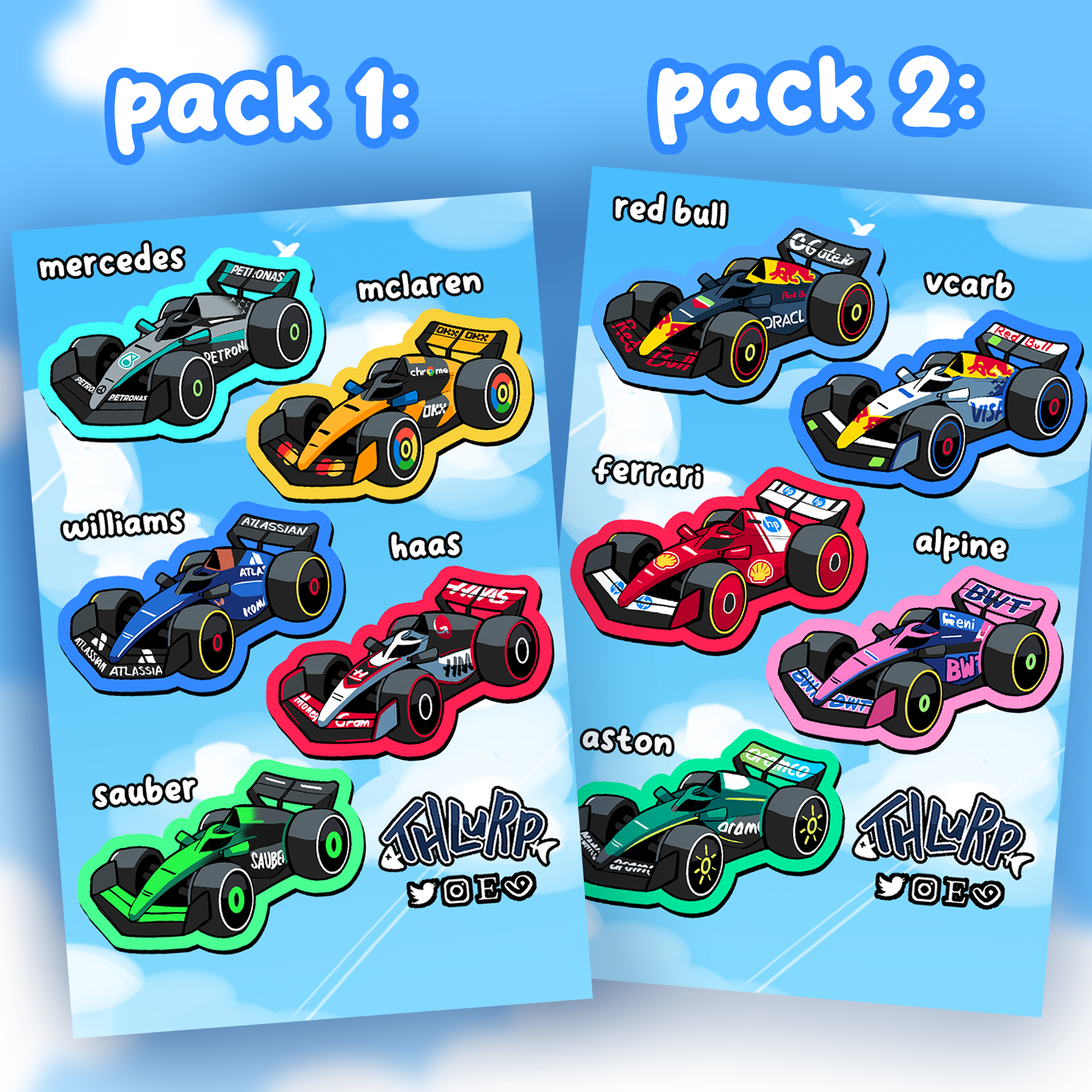 | Option | Pack 1 (Mclaren, Mercedes & more), Pack 2 (Ferrari, Red Bull & more) |