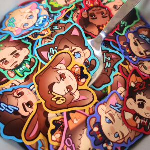 A pack of 5 ~6cm die cut waterproof vinyl stickers with semi-gloss laminate!