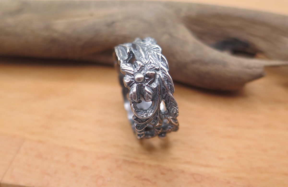 ANOTHER FLORAL MORTIF DESIGN IN THIS SOLID STERLING SILVER BAND.
