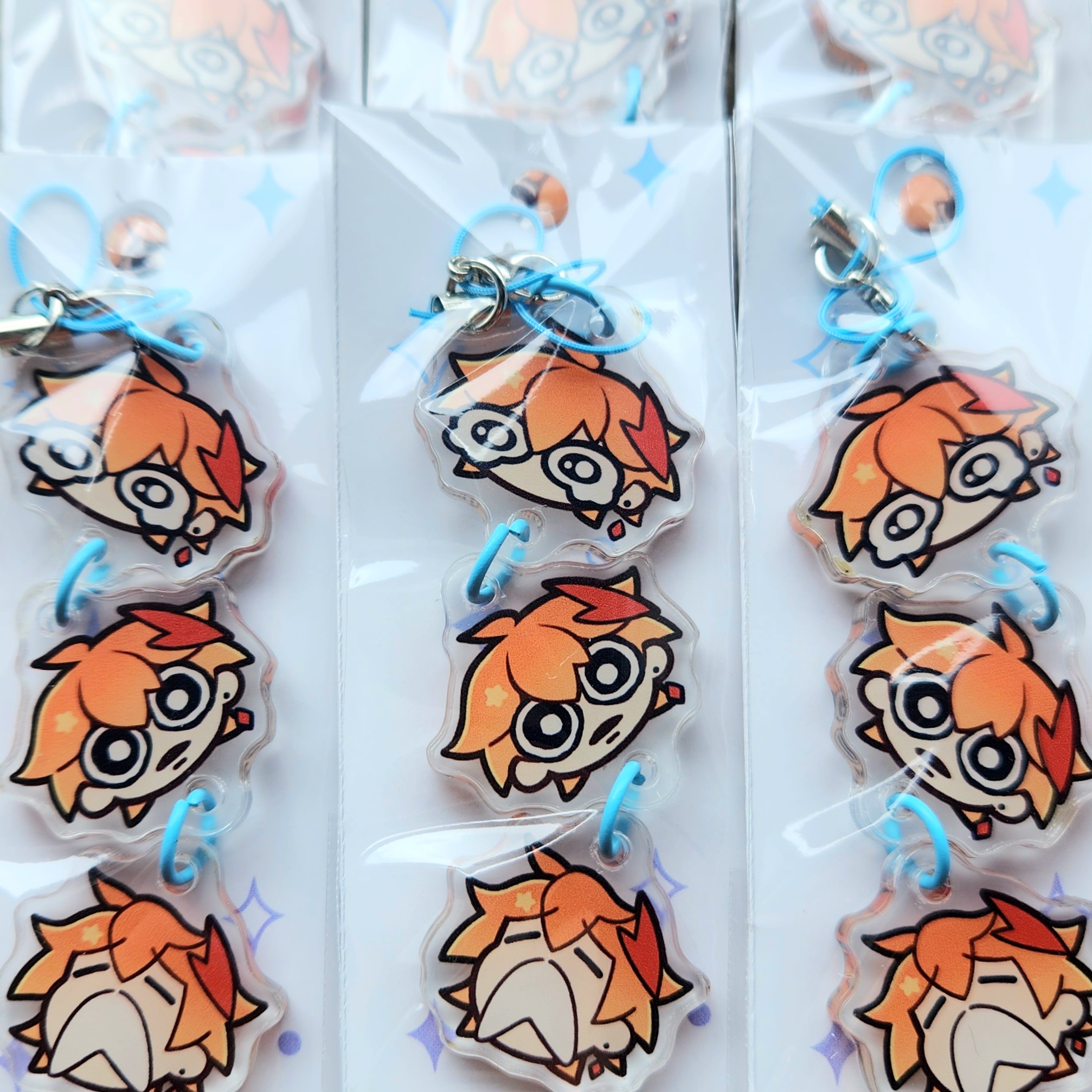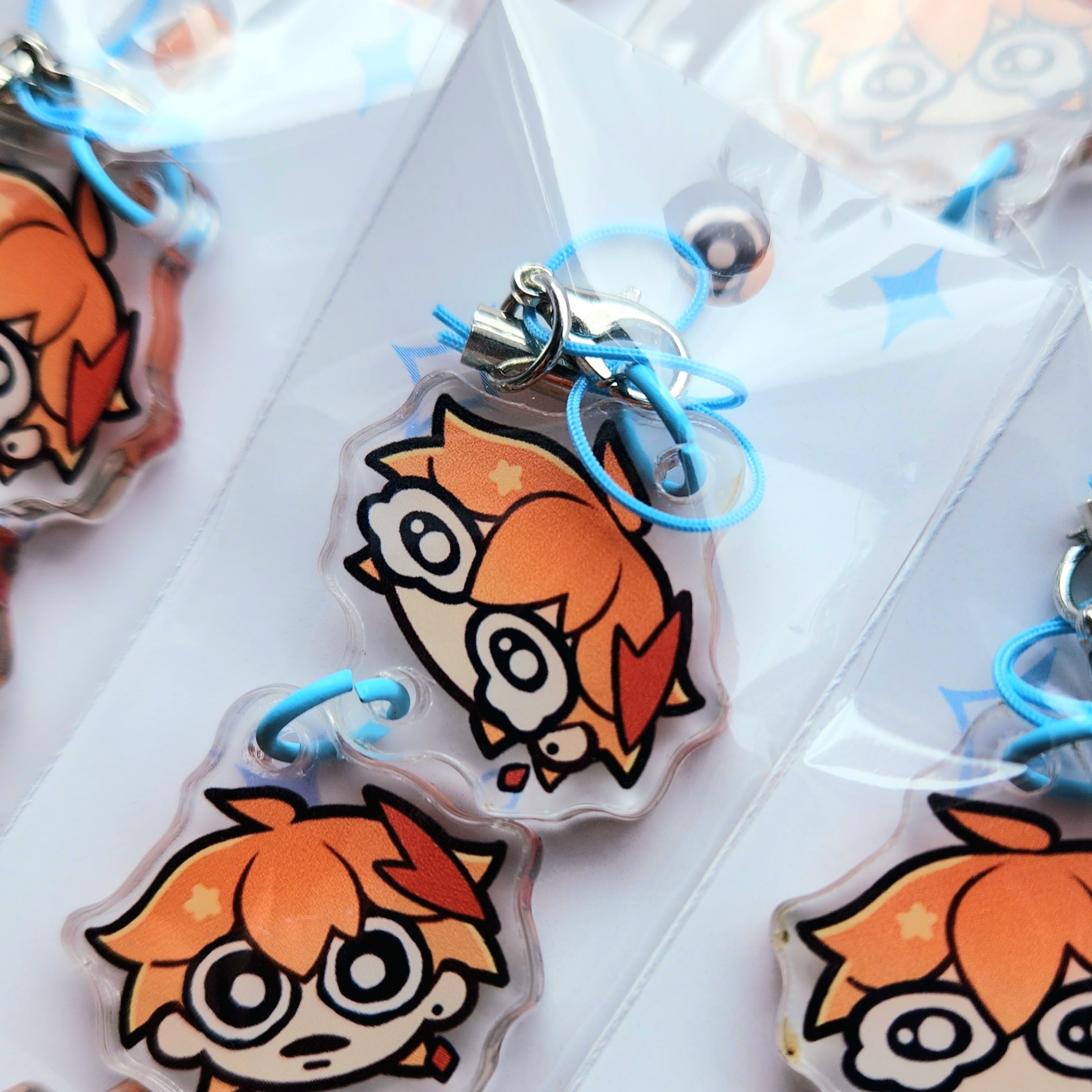 Acrylic phone strap charm of Childe (Tartaglia) from Genshin Impact.