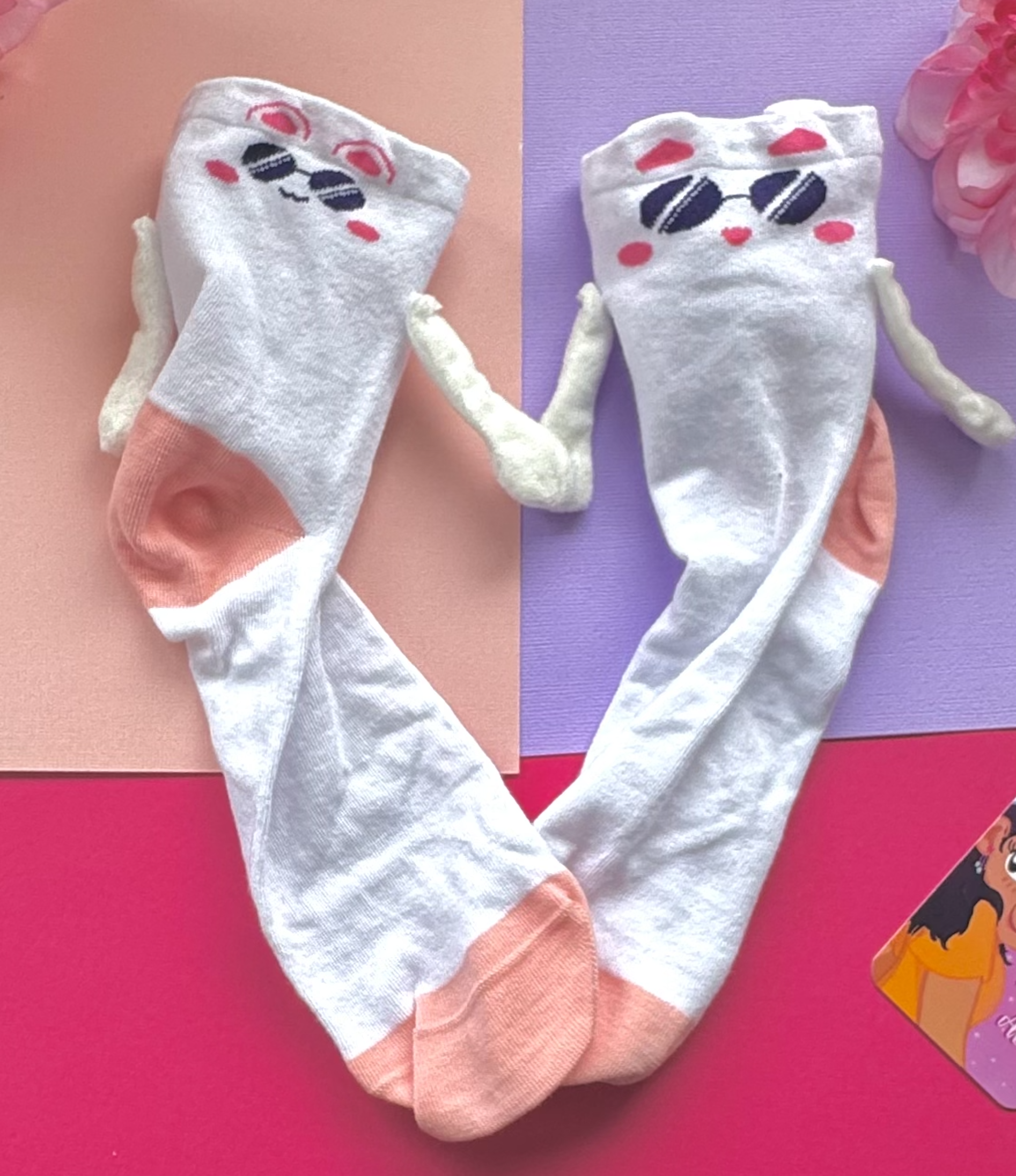 Super cute little kitty socks, they hold hands!