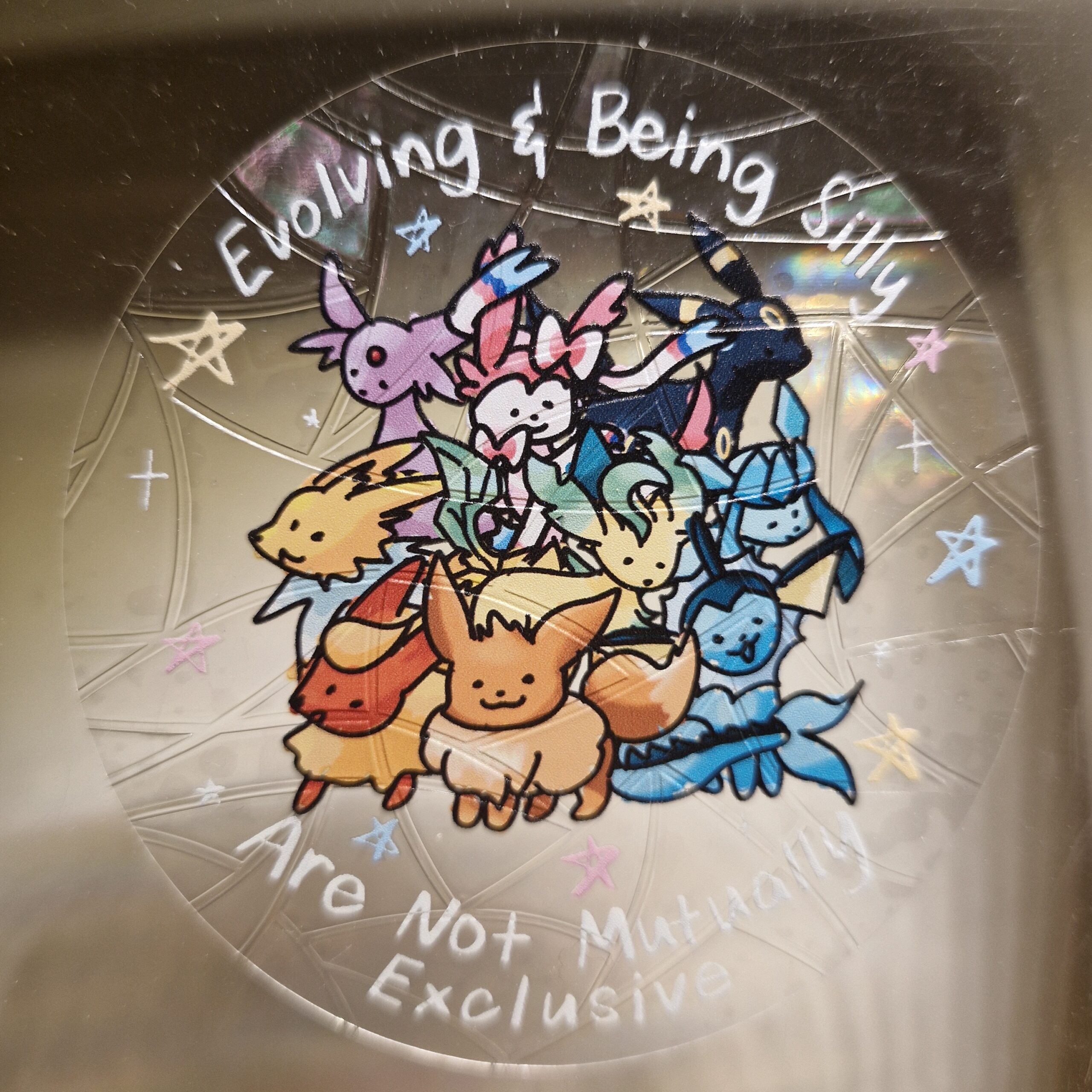 Stay silly, stay goofy with the derpy-looking eeveelutions on this sun catcher sticker!!