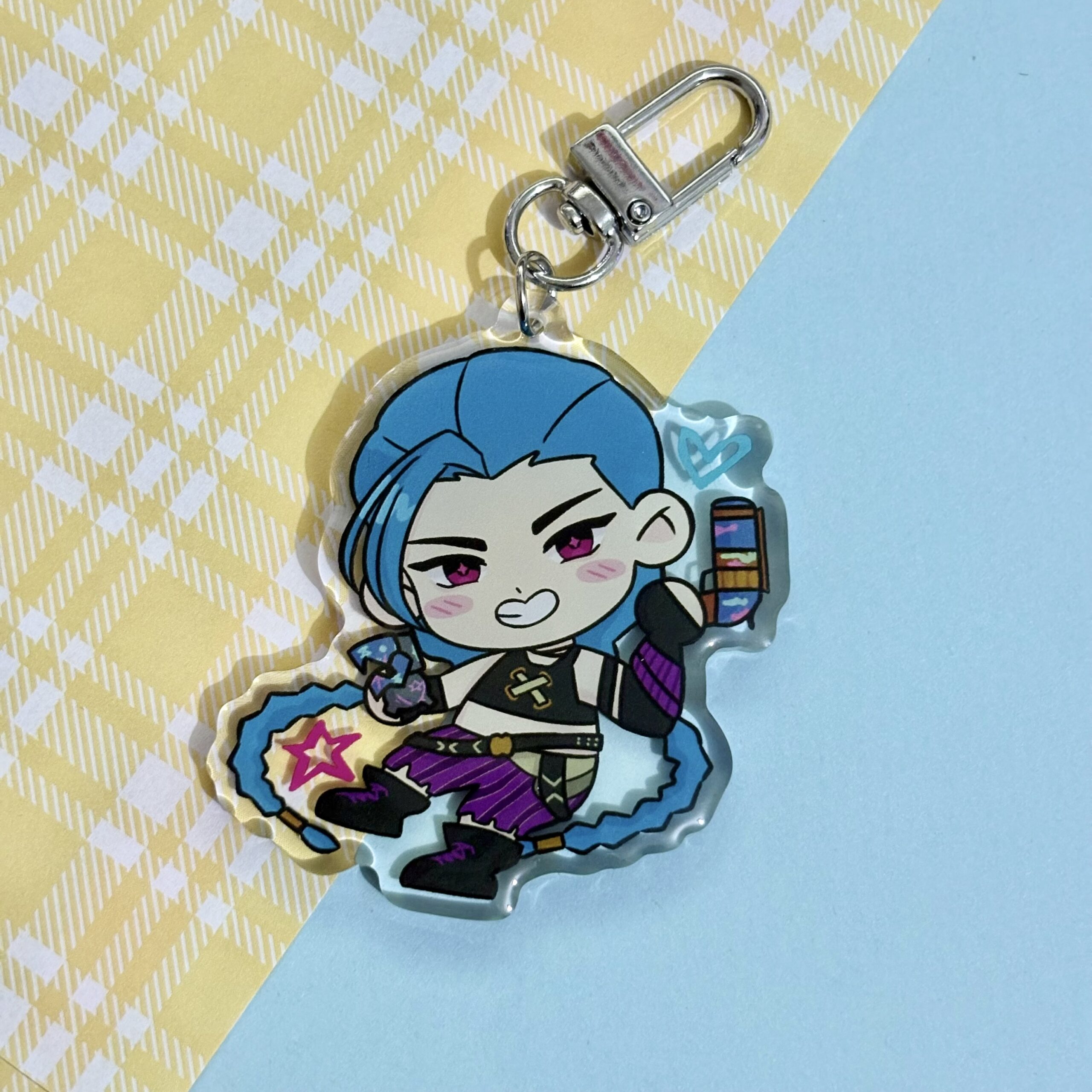 Keychain featuring Jinx from the animation series Arcane and video game League of Lengends!