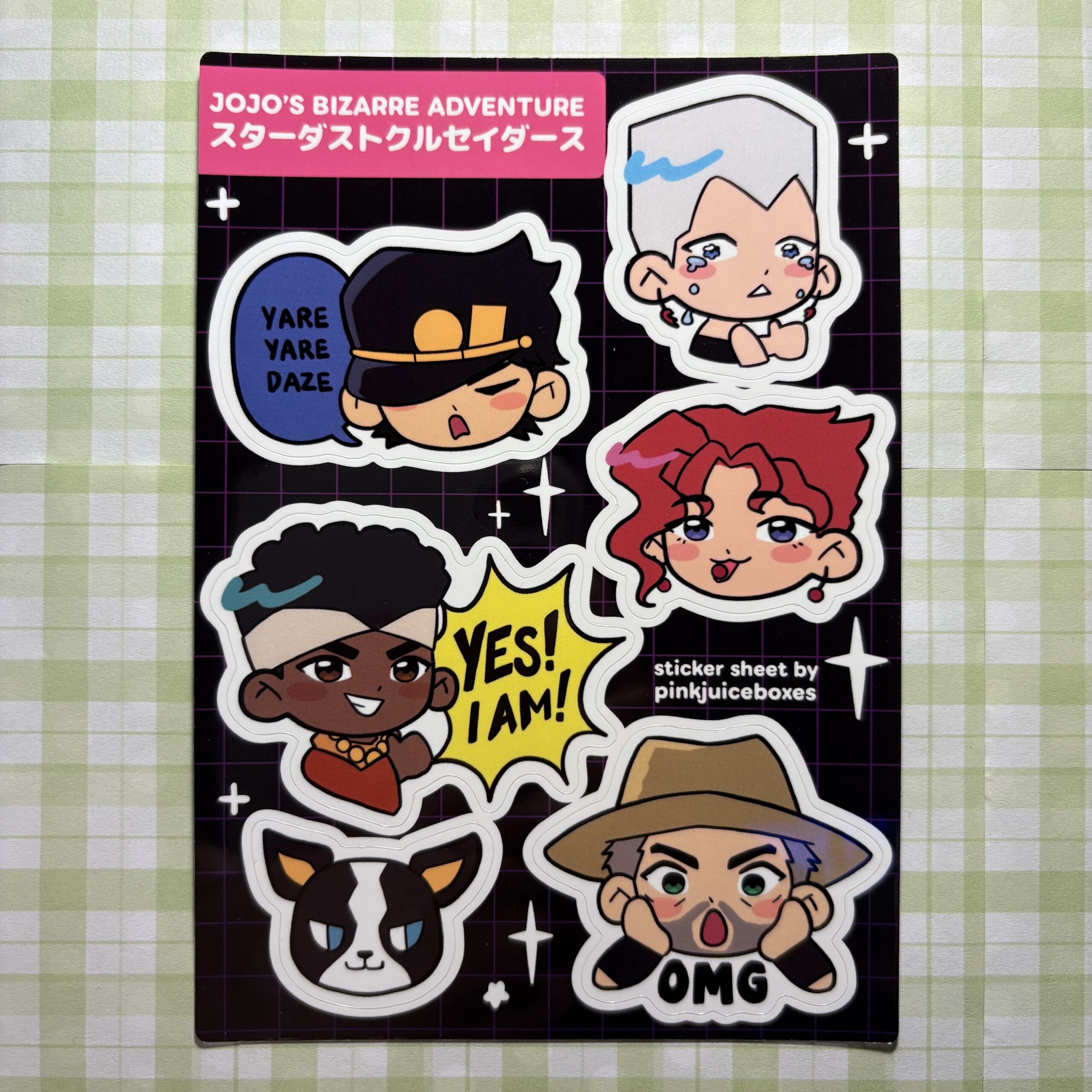 Sticker sheet featuring characters from the anime/manga series JJBA!
