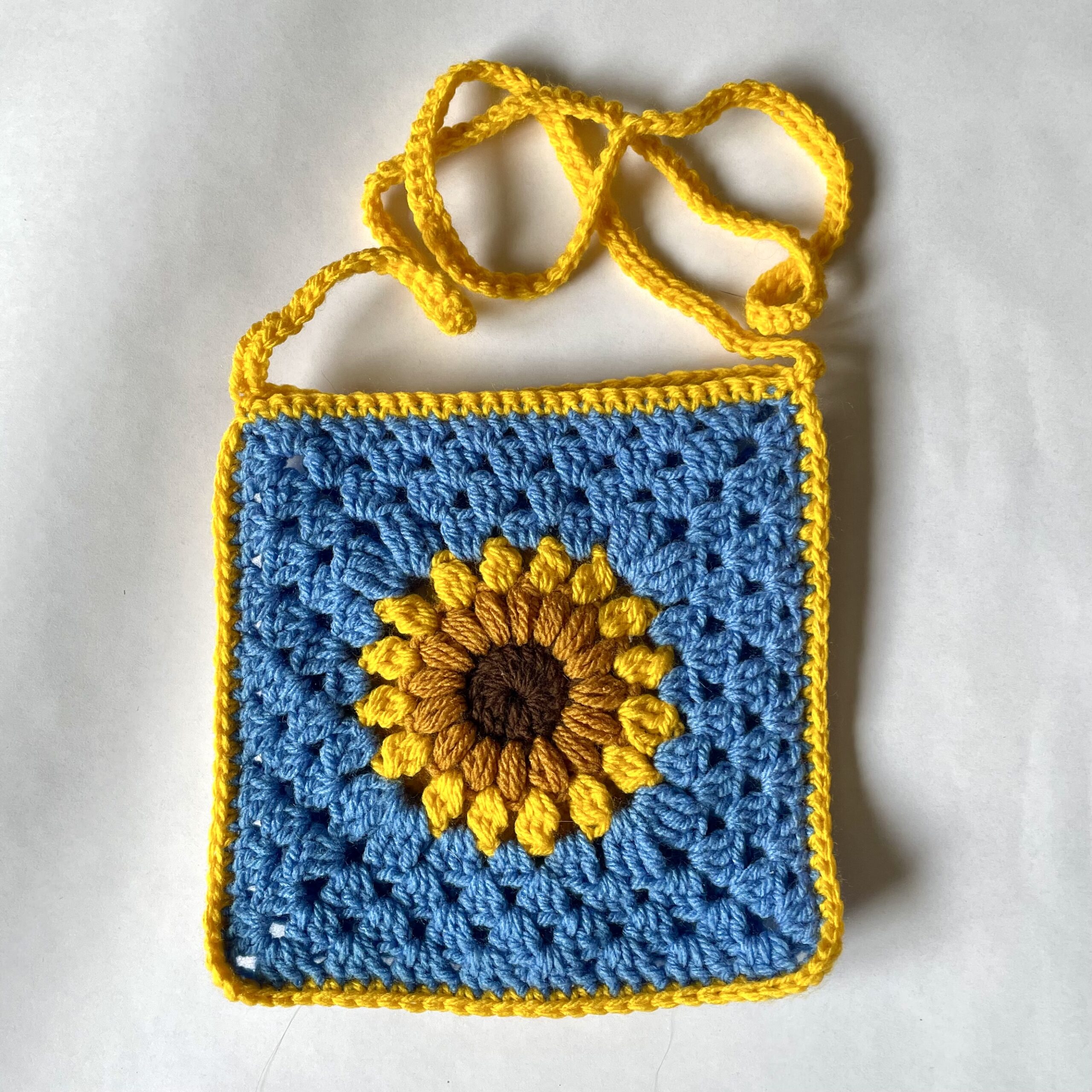 Mini little sunflower bags that can be worn over the shoulder or cross-body. Super sweet, and (kinda) practical as can fit a phone, keys and a wallet and bring such sunshine and colour to your outfit! The actual bag size is about 16cm x 16cm.