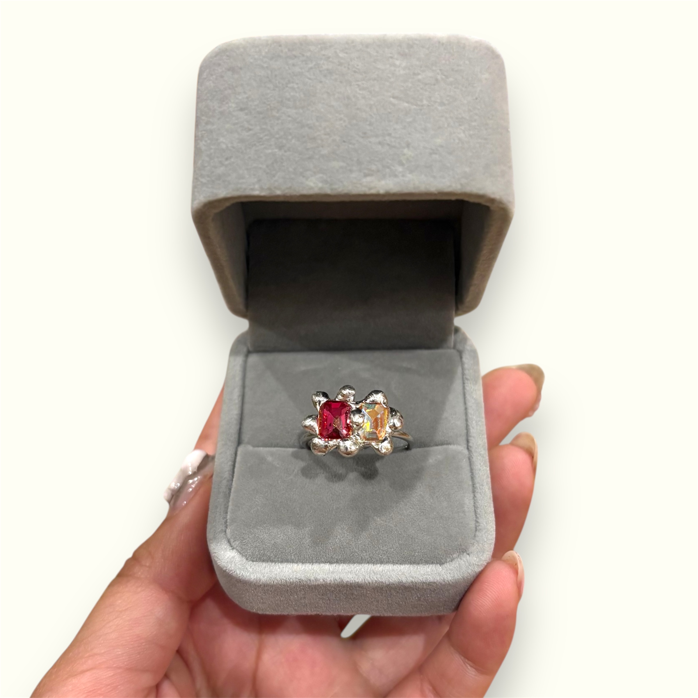 melting double gem ring by pinkduck handmade
