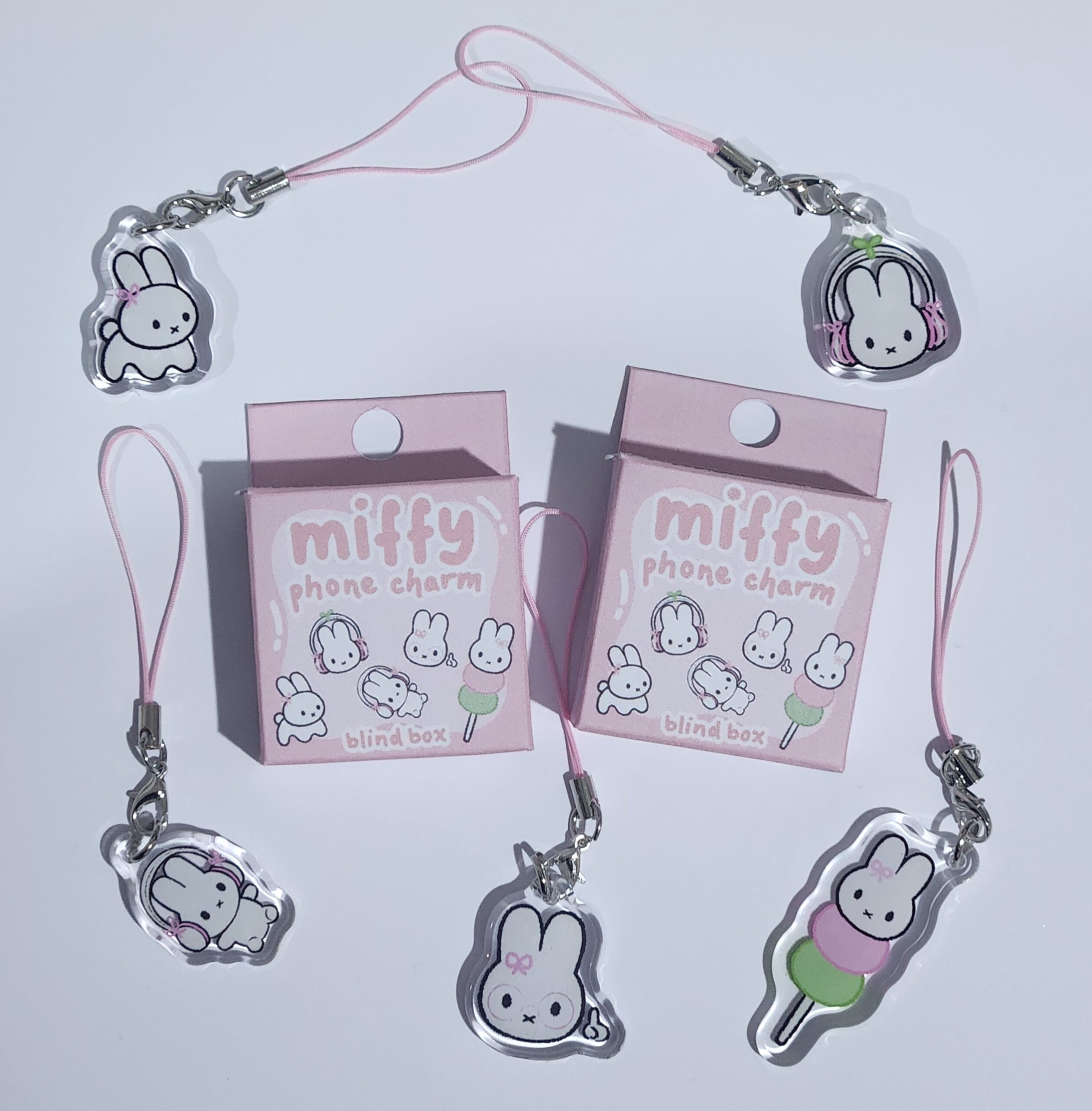 phone charm with pendant around 1inch in size. comes in 5 different miffy variations