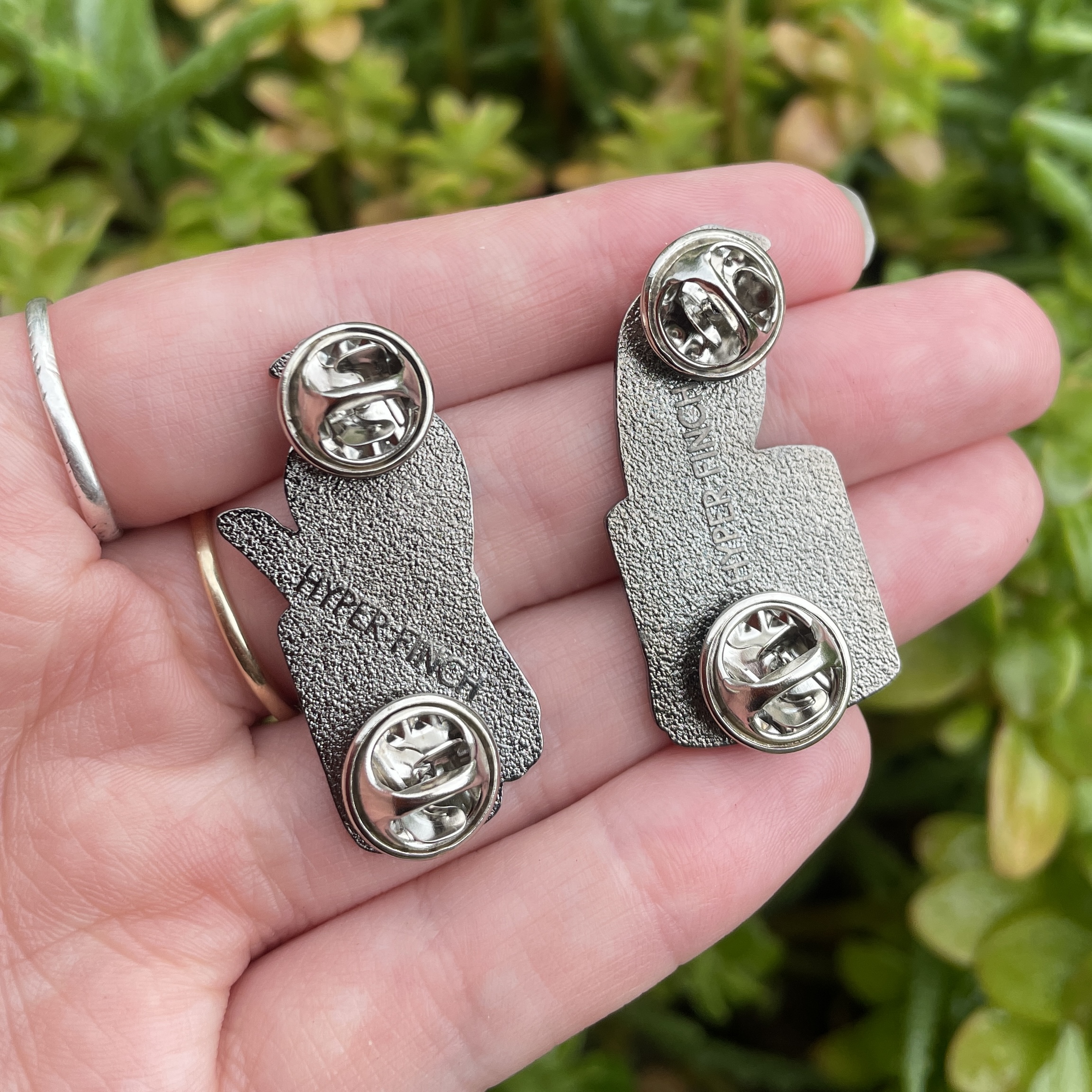 This listing contains 2 enamel pins, both with 2 pin posts and butterfly clutches.