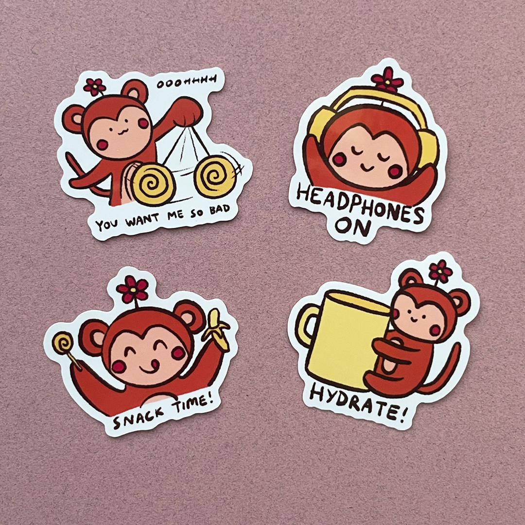 Pack of 4 die-cut monkey stickers – Waterproof & Weatherproof.