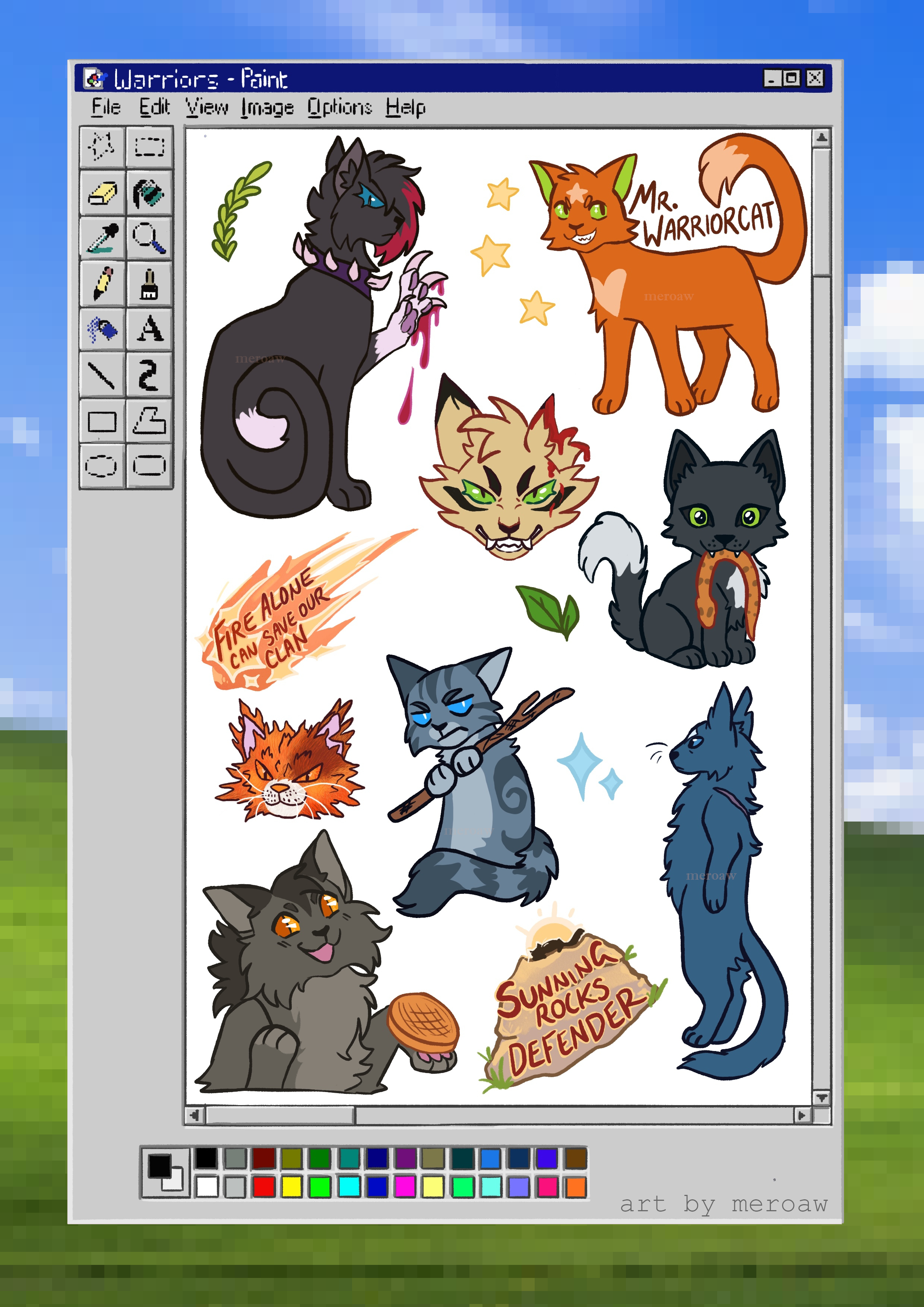 Some little cats in the old school style of MS paint! This is a holographic sticker sheet.