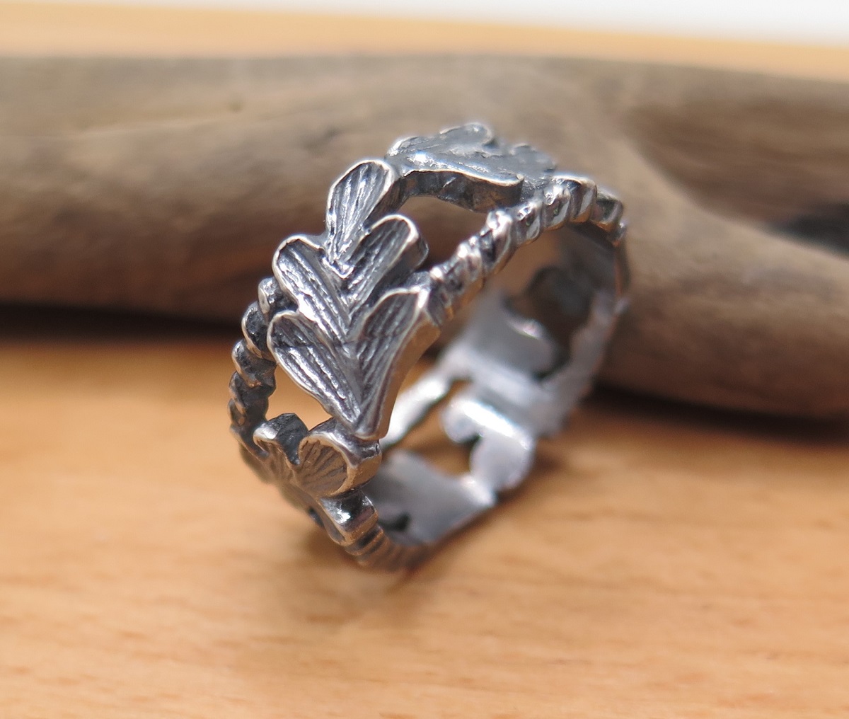 BEAUTIFUL OAK LEAVES WRAP THEIR WAY ALL AROUND THIS BAND.