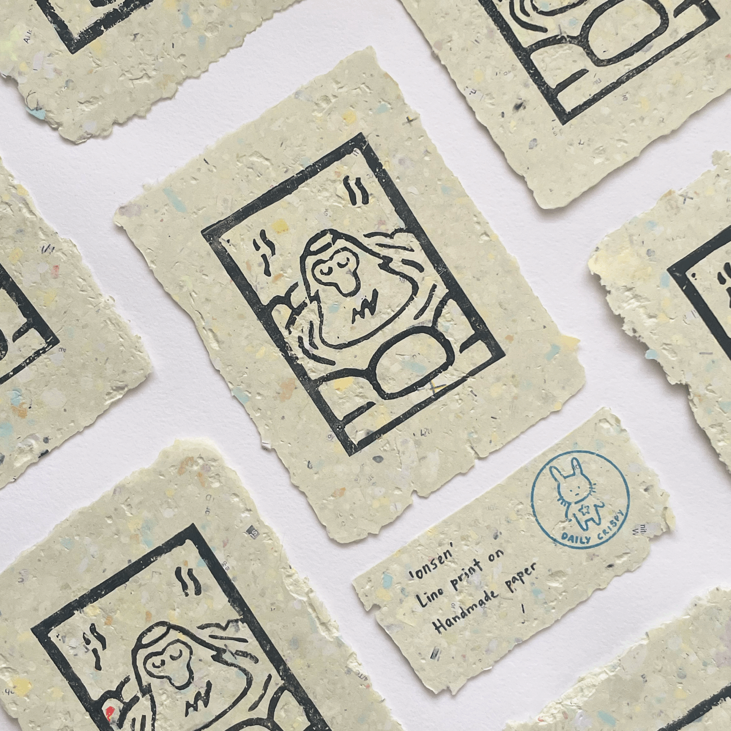 ‘onsen’ – lino print on handmade paper – inspired by my trip to nagano japan🐒♨️