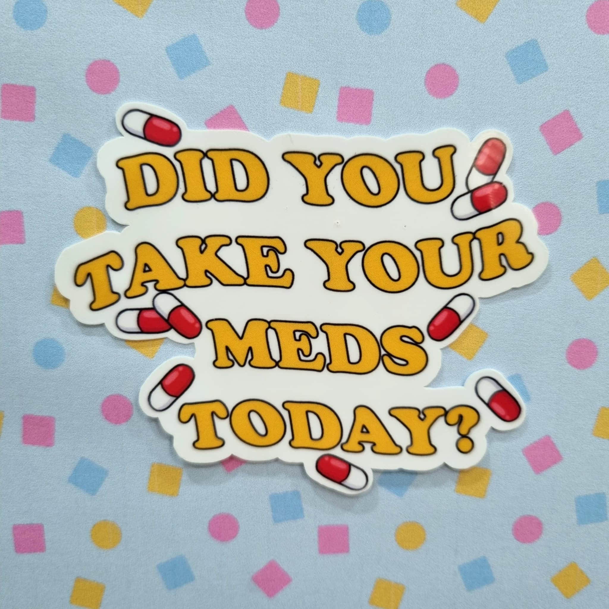 If you’re anything like me and you’re living with a chronic illness and a packed schedule, you often forget to take your meds. Now with this handy little sticker slapped on my drink bottle, I (usually) always remember to take my meds. How convinient!