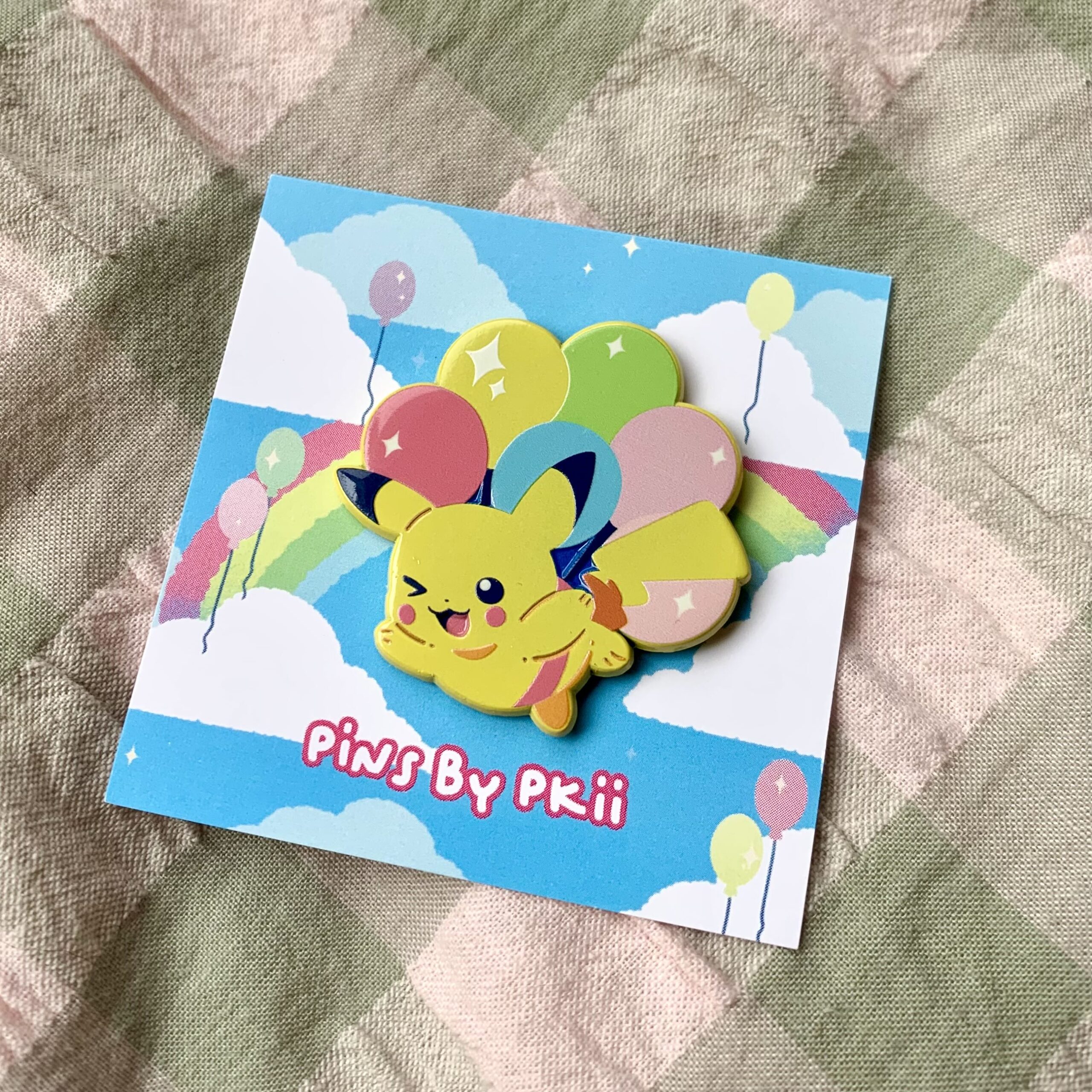 4cm dyed enamel pin with screen printed features featuring Pikachu from Pokemon.
