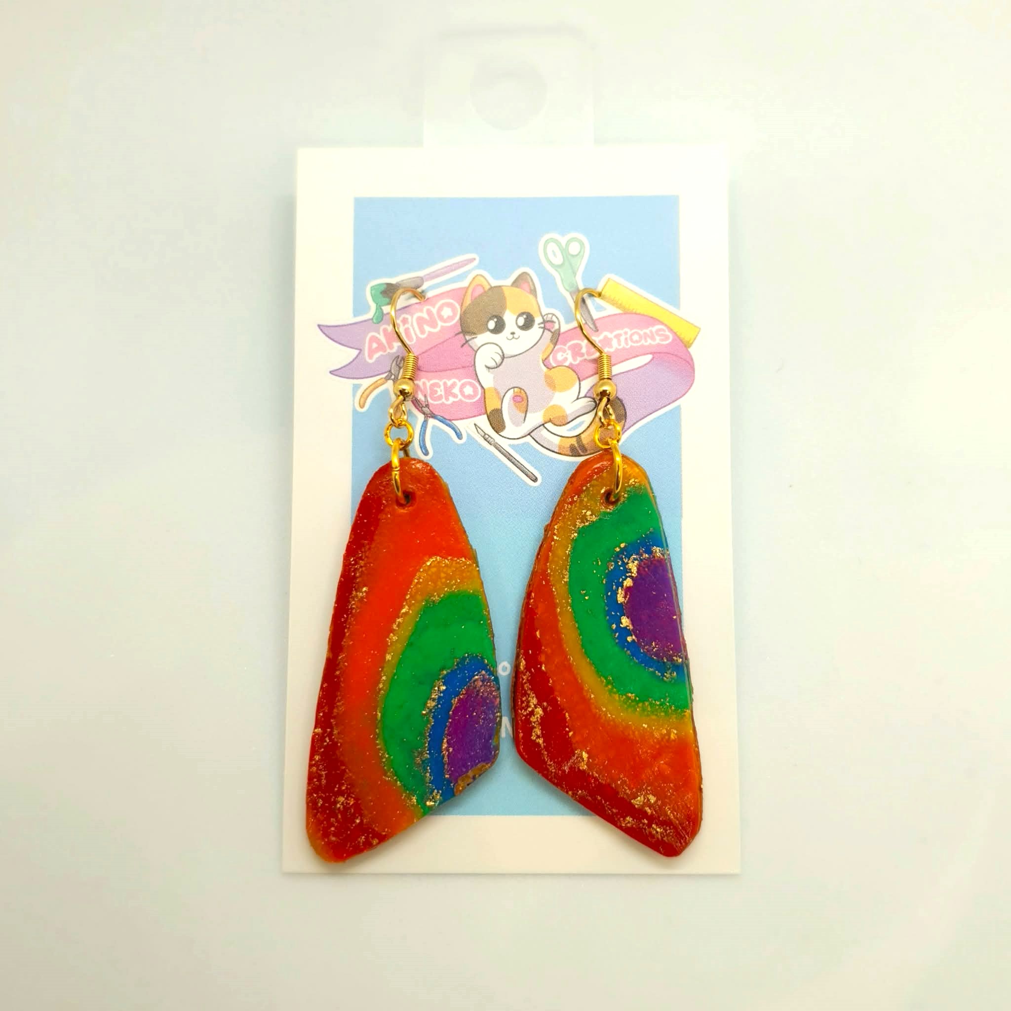 Show off your flag with these geode inspired earrings in the colours of the pride flag.