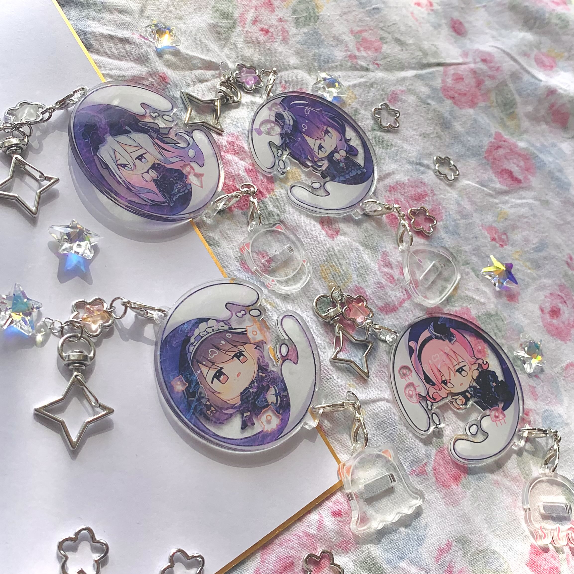 They can be customised into 2 keychain variations, or a standee! The keychain clasp also comes with a beaded accessory attached!