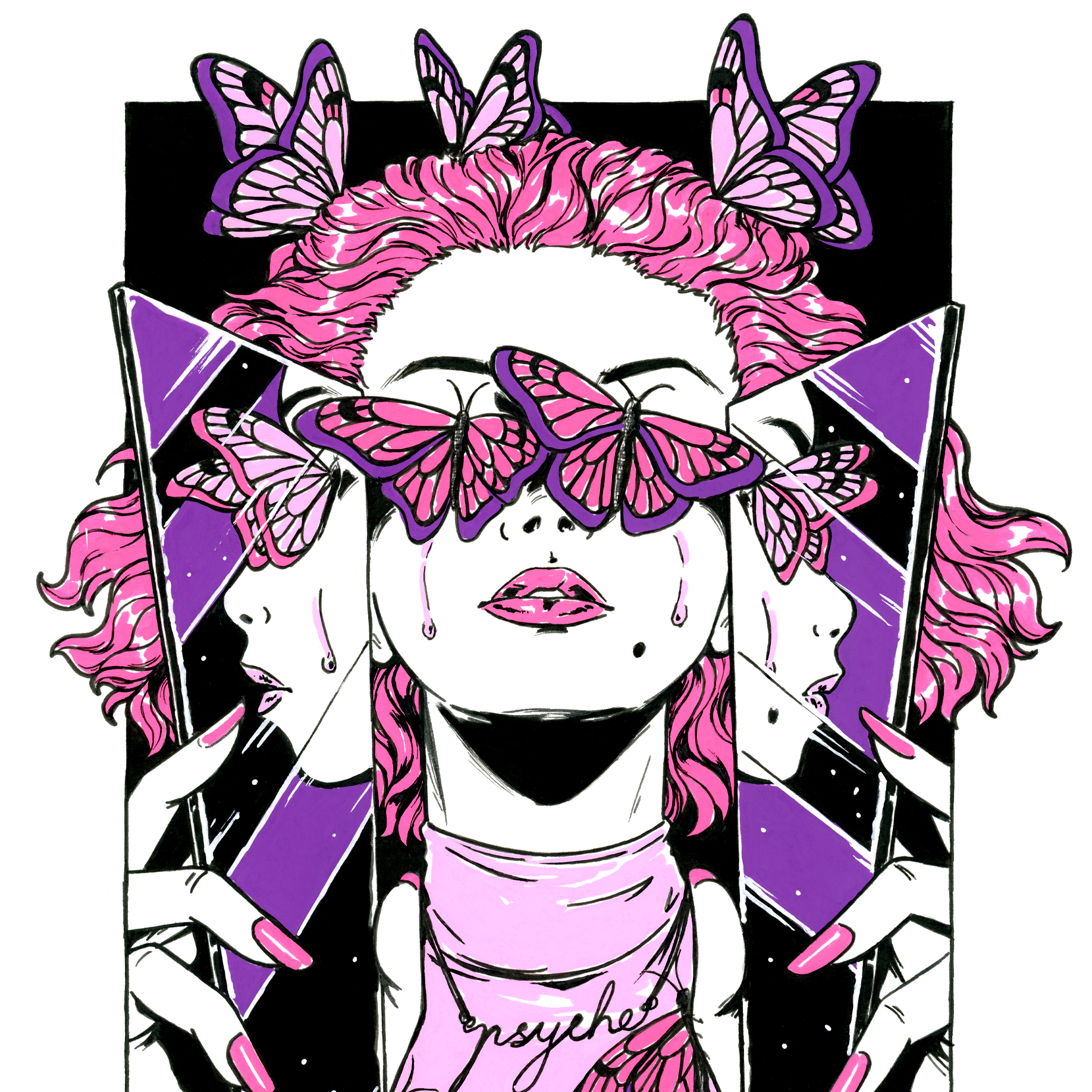 Part of an original series exploring modern interpretations of Greek Goddesses. Hand-drawn with fineliners and paint markers by Jessica Harris in her home studio in Melbourne.