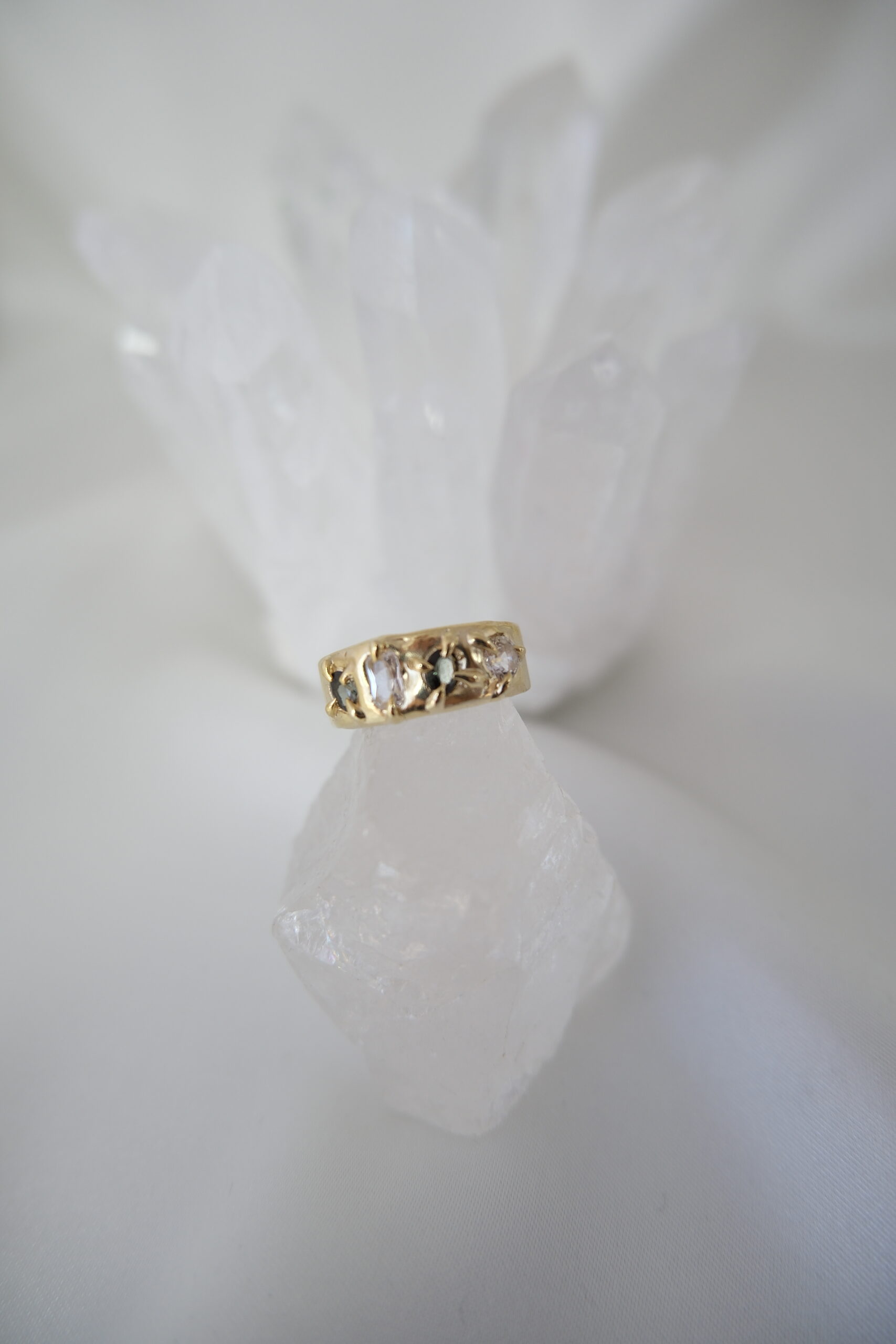 - Lab-Grown Gemstones: Green Tourmaline, White Sapphire